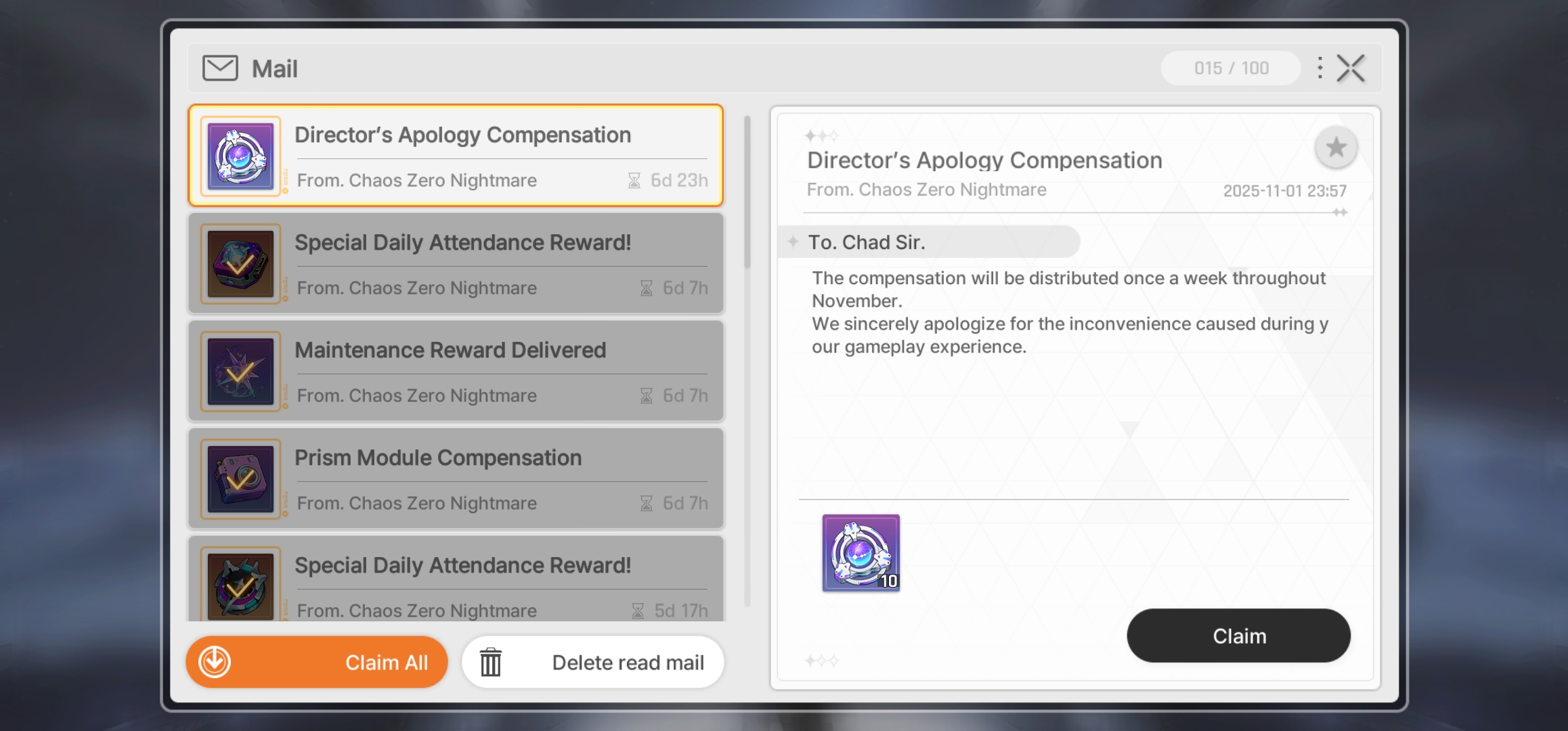 Why did we get 10 apologems? It says we will get 10 more once a wekek for november