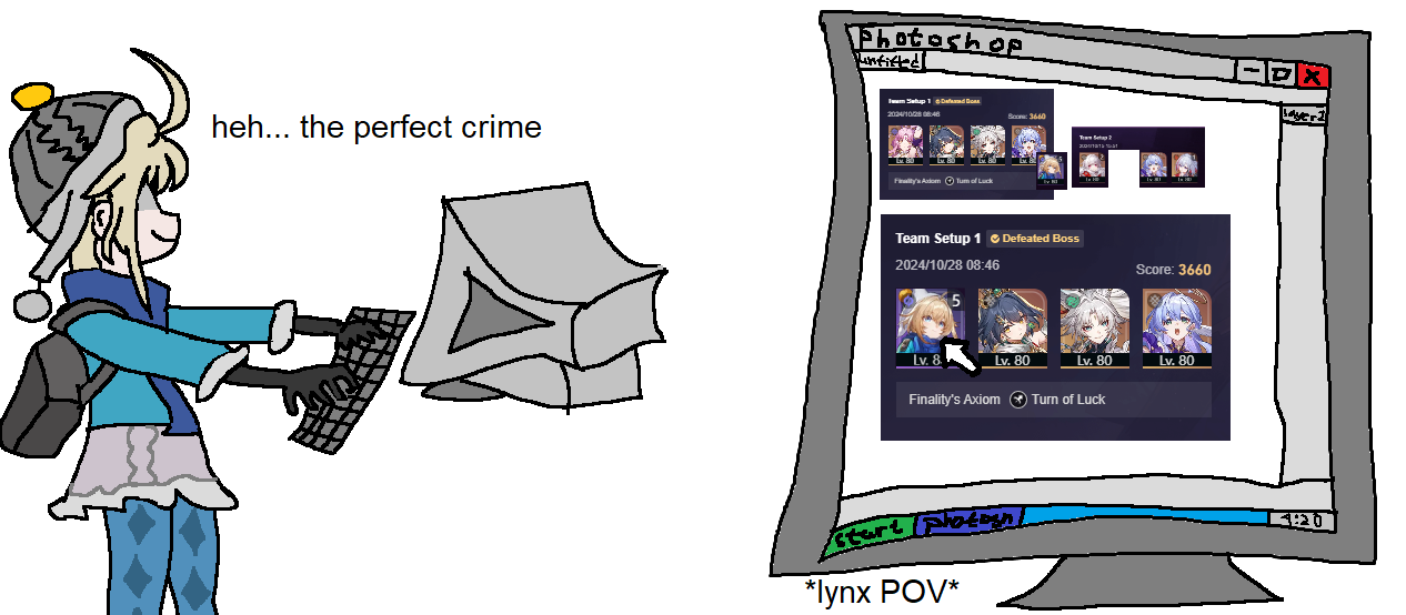 >>544994176I had this god run going, somehow not even my PB in damage despite being the faster to get to lygus.https://youtu.be/sl5wF70-Nag?si=b58NeuFIHbL_Ec-JTrying to copy this video too, I swear had I pulled for March cone this would be easy.Also I been mixing relics so much now ( don't know whats good anymore, sometime Dan has energy rope, sometimes not, sometimes atk over speed boots, sometimes March has an HP cone, sometimes she has the F2p one, sometimes Gallah has energy cone over healing one, it's a mes I can't keep track of