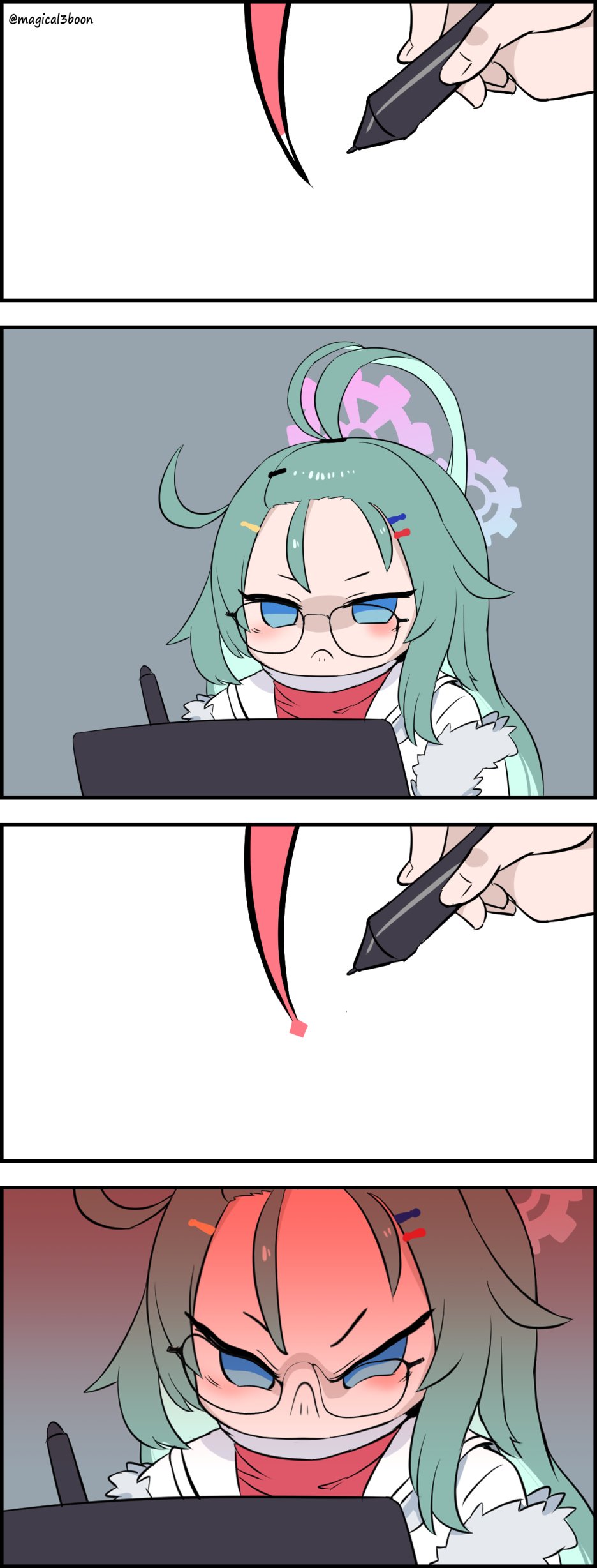 >>545035018I rember reading a doujin where Meru is drawing smut and draws a girl's halo glitching like that. Momiji asks if that's realistic so they call Sensei to fuck the shit out of Momiji to check.