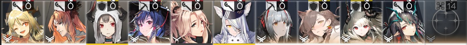 [11/14-11/28][Orienteering Headhunting]6* Guard Ulpianus, 6* Supporter Tragodia, 6* Supporter Stainless, 6* Sniper Narantuya, 6* Caster Nymph, 6* Guard Młynar, 5* Vanguard Mitm, 5* Guard Gracebearer, 5* Vanguard Poncirus, 5* Defender Bassline, 5* Medic Hibiscus The Purifier, 5* Caster Aroma