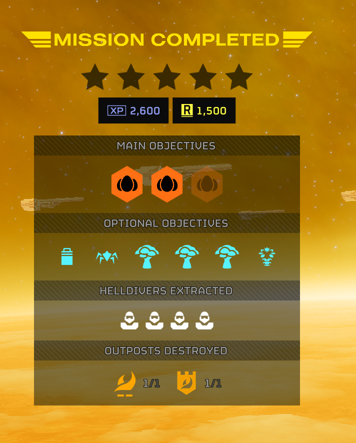 >Hellbomb armed, clear the area>A HELLDIVA WE CAWN LO->Their lives were in our hands!>-6 Million requisition