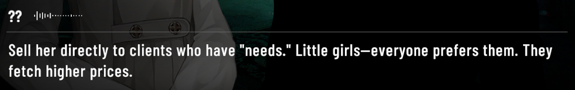 >>545104317Now it makes sense why they kept emphasizing to wait until Chapter 6.But I think now the problem is not just about the mediocre story anymore, but how the director bullied his subordinate, took his script, and modified it to his liking, eventually forcing him to quit the company.They also admitted that the current story tone is not dark enough, and the role of MC in the story is too shallow.Even in your screenshots the MC is helpless, voiceless, only represented by plain texts.Wouldn't you say that it's a problem?