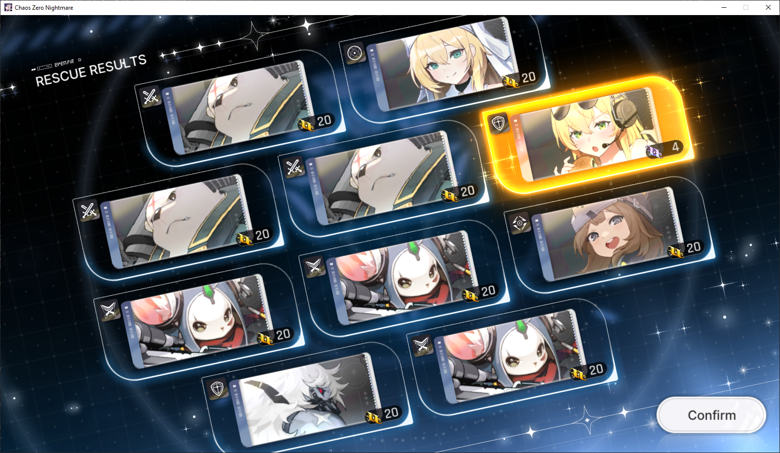 The nightmare is ongoing... >>545084526>Current Featured Banner/Upcoming BannerHaru - Striker - Justice - Until 11/12Yuki - Unknown - Unknown - Leaked/Expected around 11/12>Current Events/Upcoming ContentA Flickering Gleam on a Rusted Anchor - Until 11/12Galactic Calamity Seasonal content (Gives one 5* dupe of your choosing per season) - Expected around 11/12>Basic Guides and Introductionhttps://www.youtube.com/watch?v=B-0CaRtTTpQ https://www.youtube.com/watch?v=zDFkvOXO2Jg >Deck building simulatorhttps://czndecks.com/>PC Client (Stove)https://www.onstove.com/en/download>Reroll guidehttps://game8.co/games/Chaos-Zero-Nightmare/archives/559640>Reroll tipsReroll Beginner Banner for desired character, Standard banner to guarantee two 5 star start, or reroll for HaruYou have enough rolls to finish beginner banner and one 10 roll on limited banner (You can still luck yourself two 5 stars through beginner banner)>Cards aren't savingCards saving scales to chaos difficulty and if Deep trauma mode is on (purple icon on top right of chaos team formation)>Apology Stream Summary https://www.youtube.com/watch?v=BvkE1KHHwFg&thttps://pastebin.com/U2Cg4hDC