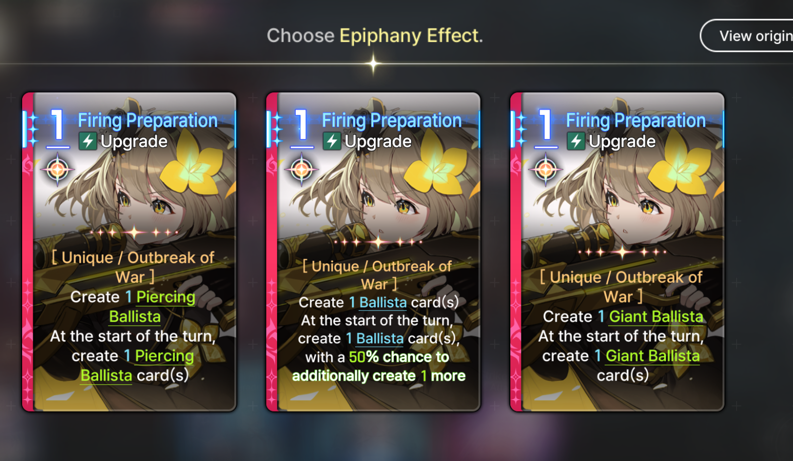 >>545162394>is there any way to target acquire a certain set of cards and gear?No, keep praying.>how do epiphanies work? Random choice per combat. Card epipis and Character epipis are different. The former "upgrades" the card, the latter unlocks one of the character's unique cards (bottom 4 when you check their cards)