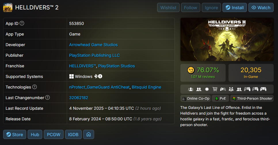 >Previous>>545080613>WHAT IS HELLDIVERS 2?HELLDIVERS 2 is a 2024 crossplay, co-op, squad-based, PvE 3rd person shooter for PC, PS5 and XBox Series X/S where players fight against hordes of alien insects, robots and squids to Spread Democracy™. Players wage war on contested planets, each with a different biome, completing as many objectives as possible in a procedurally generated level while constrained by a time limit. With enough approval from Joel, a planet can be defended or liberated, and the player base must combine their efforts as much as possible to follow the GMs railroad.https://store.steampowered.com/app/553850/HELLDIVERS_2/https://www.playstation.com/en-us/games/helldivers-2/https://www.xbox.com/en-us/games/store/helldivers-2/9mx9wn9dfpgt>WHAT ABOUT THE FIRST HELLDIVERS GAME?Released in 2015 for PC, PS3/4 and PS Vita, the original HELLDIVERS is a shared screen top-down shooter in the same setting. Its mechanics were based primarily on Arrowhead's first game, Magicka.https://store.steampowered.com/app/394510/HELLDIVERS_Dive_Harder_Edition/https://www.playstation.com/en-us/games/helldivers/>LOBBY HOSTINGhttps://files.catbox.moe/83ixkr.png>MODDINGhttps://files.catbox.moe/c81ogo.png>INFORMATION RESOURCEShttps://helldivers.wiki.gg/https://helldiverscompanion.com/https://democracy-hub.nethttps://helldive.live>MAJOR NEWSAug 26 ODST Warbond https://www.youtube.com/watch?v=gUC24yAP7SoAug 26 Into The Unjust https://www.youtube.com/watch?v=dJi8VsvnkoE Sep 04 Dust Devils https://www.youtube.com/watch?v=5L-UQQIFQhwOct 23 Patch 4.1.0 https://www.youtube.com/watch?v=OBW4NumlYHo>LATEST PATCHESOct 23 1.004.100 https://store.steampowered.com/news/app/553850/view/538868565209514366
