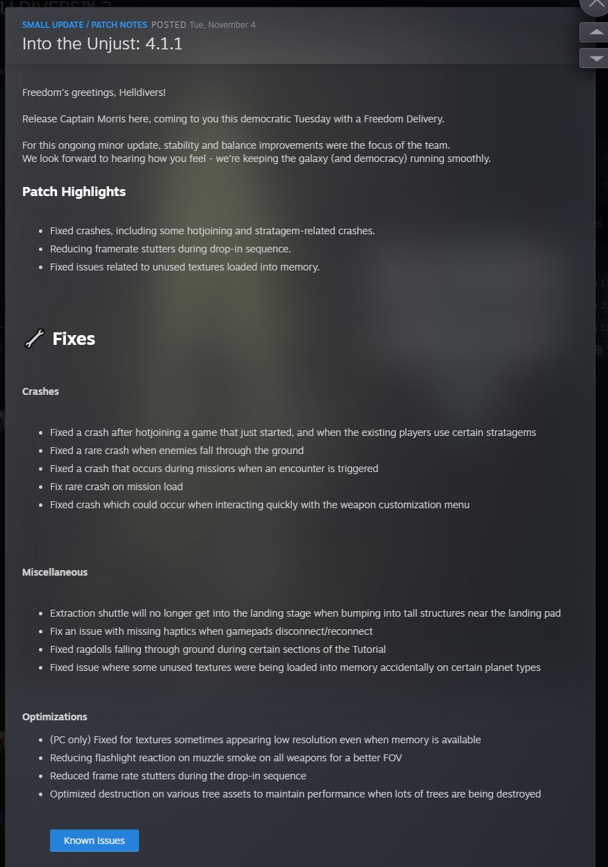 >was going to log in real quick for the night>bam 2.9GB hotfix update and because it's steam/helldivers 2 it's turbo slow and isn't going anywhere any time soon