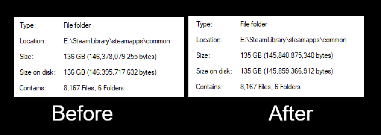 >>545249017>>545250707I took a screenshot of the directory size before and after the patch. The install size actually decreased.