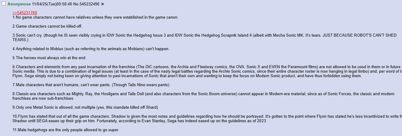 ==NEWS==>Sonic Racing: CrossWorlds - Accolades Traileryoutu.be/C6BSu_x0gcE [Embed]>Sonic Rumble arrives this Novemberx.com/Sonic_Rumble/status/1978491359452364988>Sonic the Hedgehog 4 to release on March 19, 2027variety.com/2025/film/news/sonic-4-release-date-march-2027-1236280697/==Comic Release Dates==Sonic the Hedgehog #82 - 19 November 2025Sonic the Hedgehog #83 - 17 DecemberSonic the Hedgehog #84 - 14 January 2026Sonic Racing: CrossWorlds (oneshot) - 28 January 2026Sonic the Hedgehog: Chasing Shadows - 4 March 2026==GENERAL INTEREST LINKS==rentry.org/sthglinks>/sthg/ OP template:rentry.org/sthgtemplate>Milestone pastebin:pastebin.com/LJCfZhY4>Sonic Game/Mod Recommendation Spreadsheet:rentry.org/sthglinks#sonic-gamemod-recommendation-spreadsheet>Perfect System Collection:rentry.org/sthglinks#perfect-system-collection>Sonic comic scans:grabber.zonetails.kicks-ass.net/>SAGEhttp://sagexpo.org/>SHChttp://shc.zone/>Sonic>#10000 Projectpastebin.com/Fb8Bt4ru>/sthg/ booru:sthg.booru.org/>/sthg/ OCs:sthgoc.tumblr.com/archive/>/sthg/ CyTube:https://cytube/r/sthg>/sthg/ Pixels:ourworldofpixels.com/sthgPrevious Zone: >>545152686