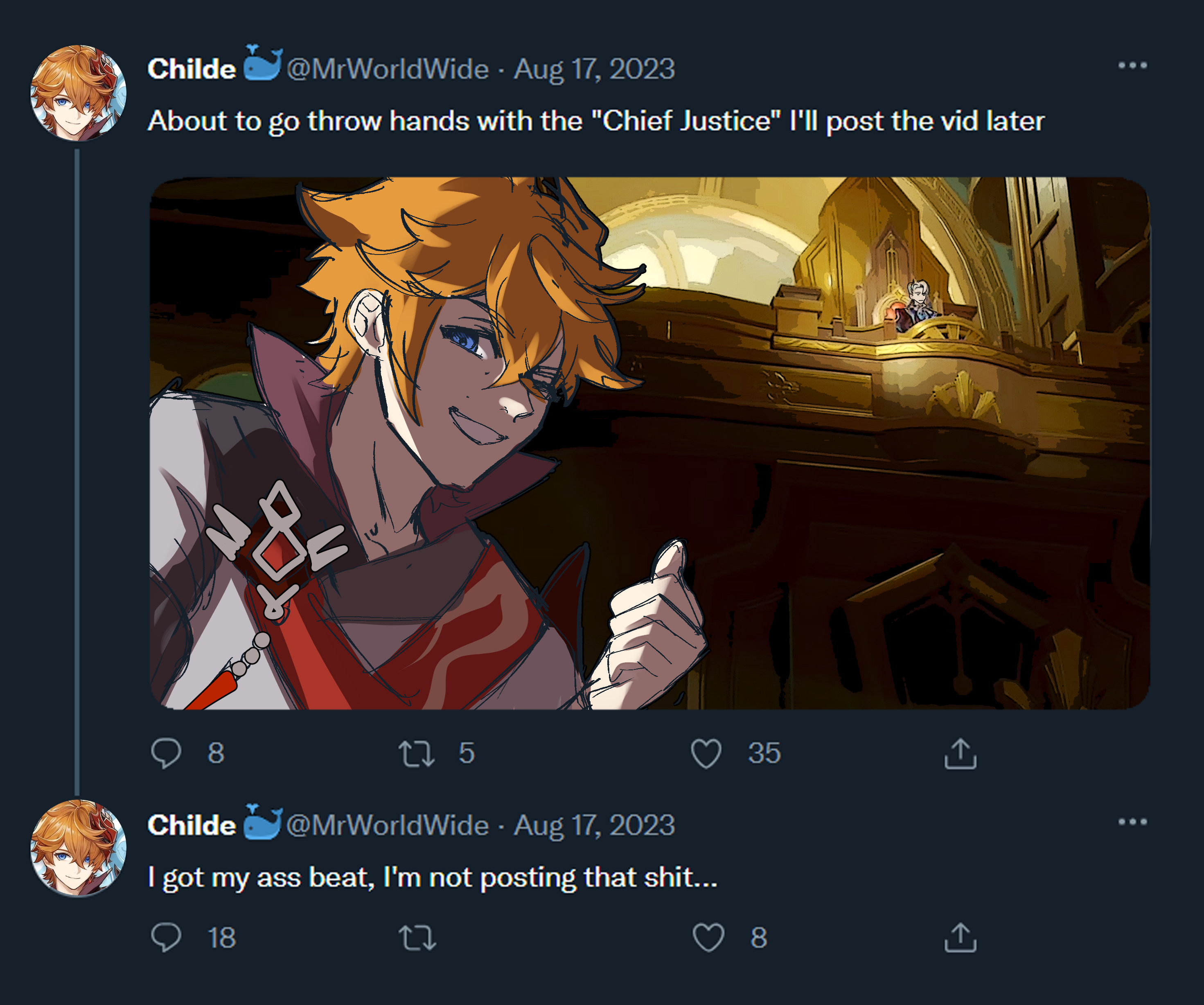Hm. It seems I was mistaken on my assumption about the Chronicle Banner. While they released Mizuki they didn't put her on the Inazuma Chronicle, so it IS possible for us to get a Fontaine Chronicle without the release of a Fontaine Standard. Does raise the question of whether Chiori will be on Inazuma banners or Fontaine banners in the future. >>545221579Ack