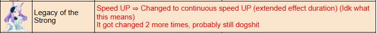 >Spe's unique gives acceleration now>Matikane's unique gives acceleration nowIf you combine them both it's 0.2 accel and 0.30 velocity. They might be good grandparents (Spechud is good as a velocity parent) now, but the thing about Matikane's unique is that someone has to be blocking her infront...
