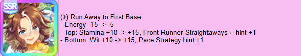 New guts cap is 700 on long and 100 less for each lesser distanceBring Urara in all your ace builds going forwardStam requirements drop by about 100 across the board so make room thereSuzuka is bait. (you) won't be able to make a good one that doesn't die with the cards we have now.Focus on pace chasers since they got the next biggest buffs after fronts and are the easiest to train in time for CM5