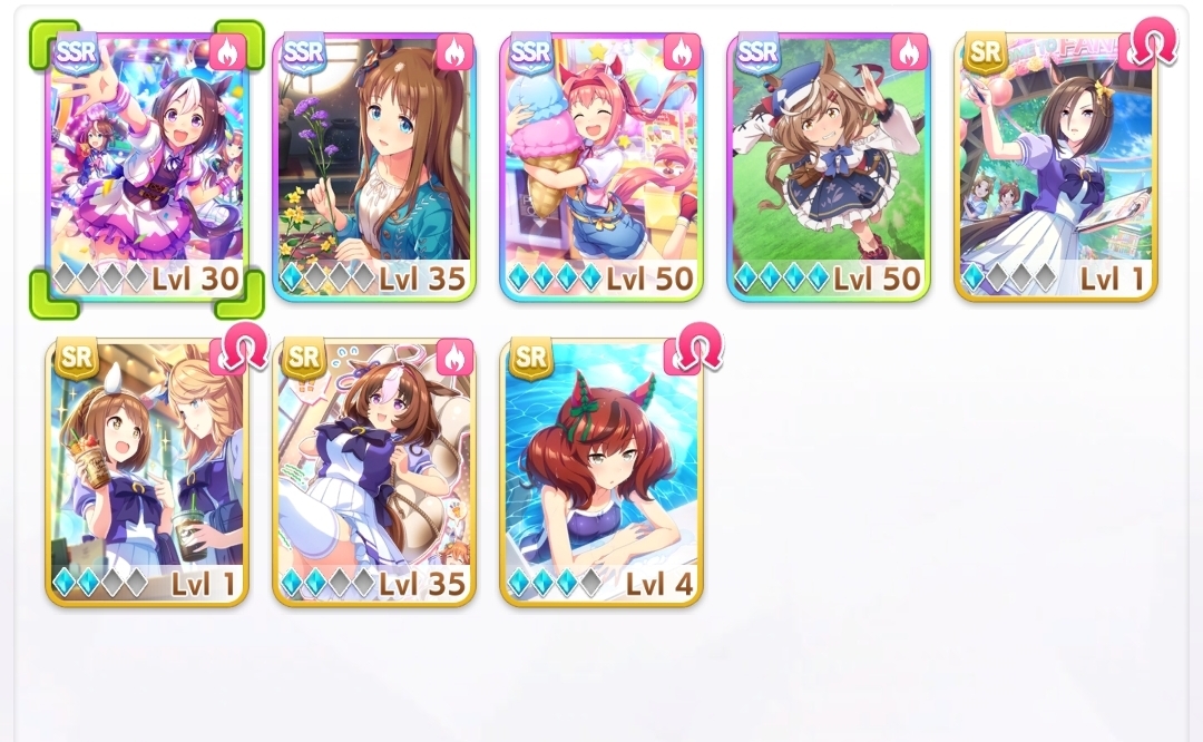 >>545231879I think I still will, if I don't get spooked by her in the all-uma banner. I'm paypigging for XOguri, and I'm sparking the all-uma banner for Maruzensky, and I really like Bourbon (plus she's a great parent for Suzuka, my oshi), so if I have the carats I'll do it. Then save until Summer Maru SSR banner, and triple-spark it.