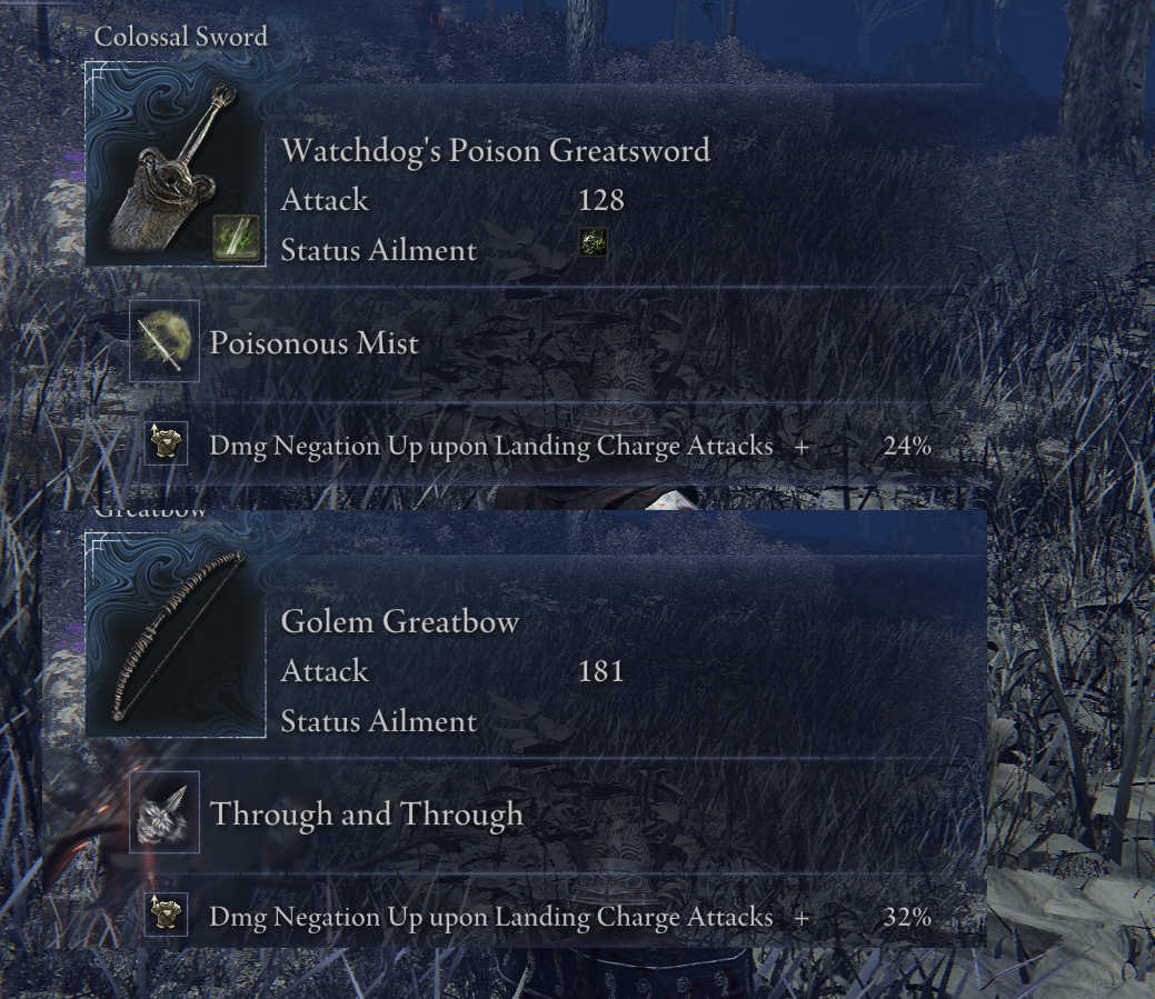 >>545325619Damage on evasion is bad too, I'm only hit during failed dodges and I would survive if not for that. If you play with randoms rot/poison build up below max HP is pretty bad since a lot of nightlord fights will be you running around getting your ult back up to revive them from double 3 bar. Everything else is fine.