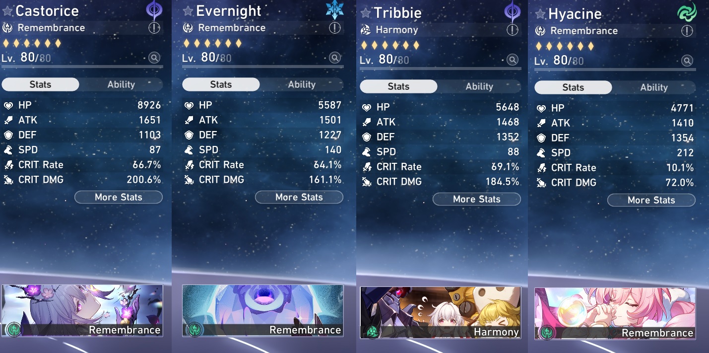 >Current Character Banners: Cyrene, Hyacine, Castorice, Tribbie + Pela, Lynx, Moze - https://www.hoyolab.com/article/41938646