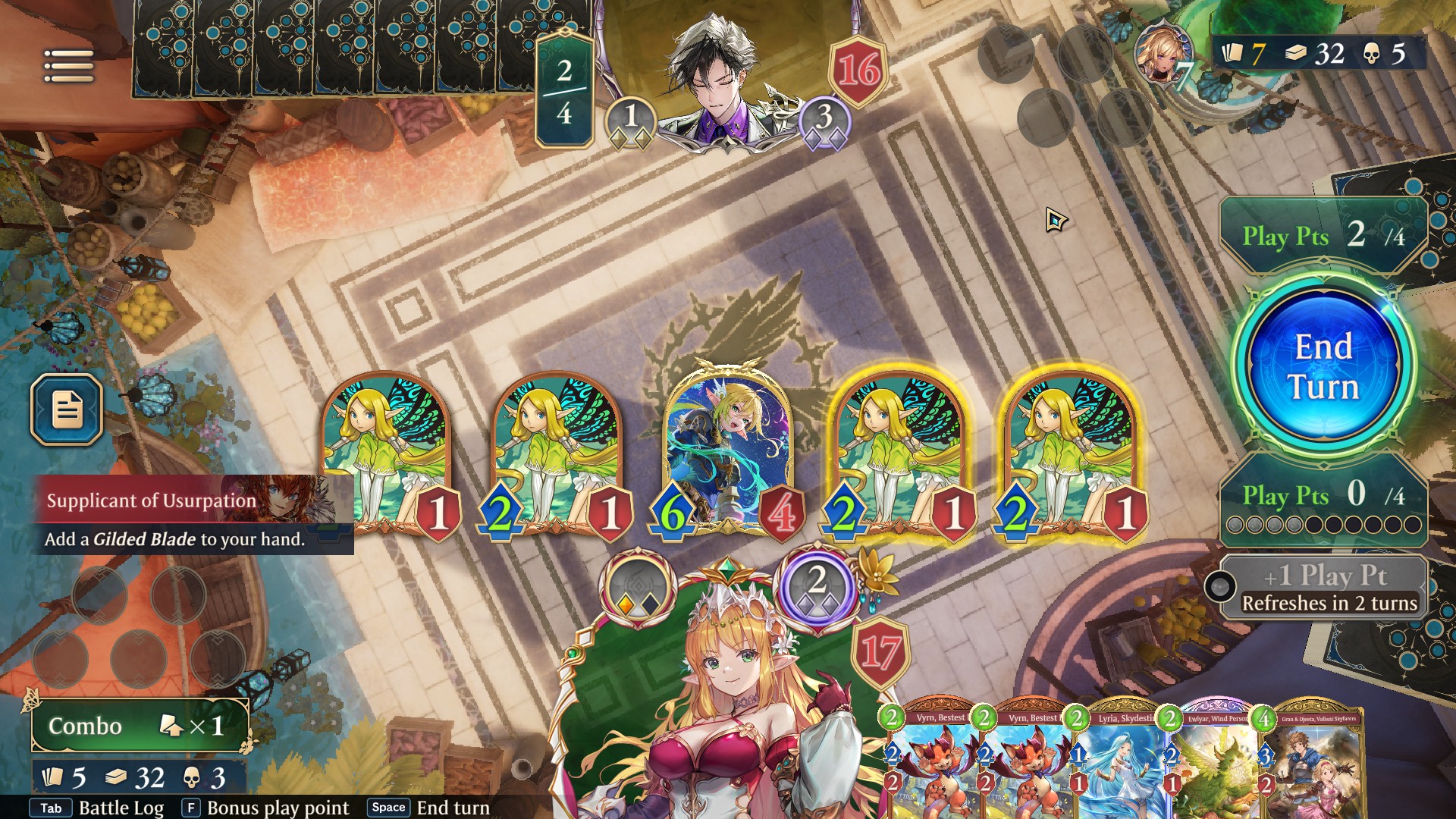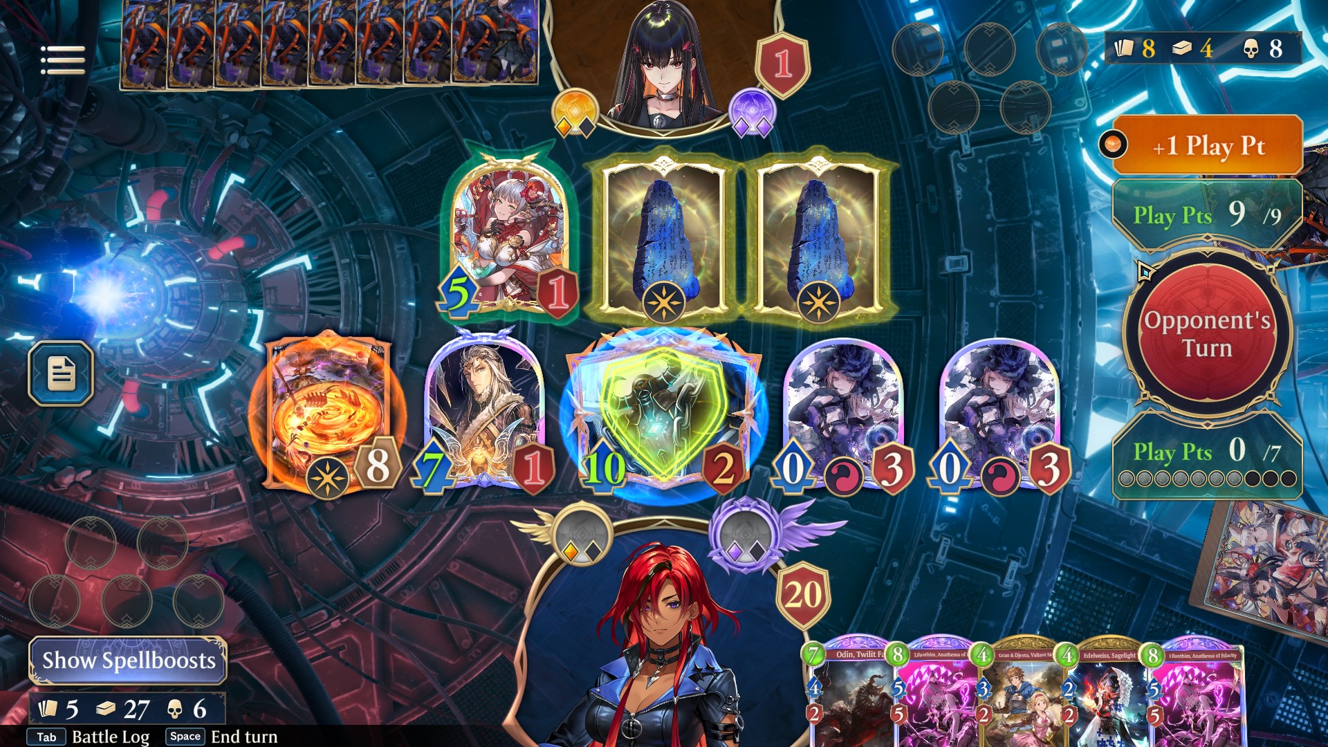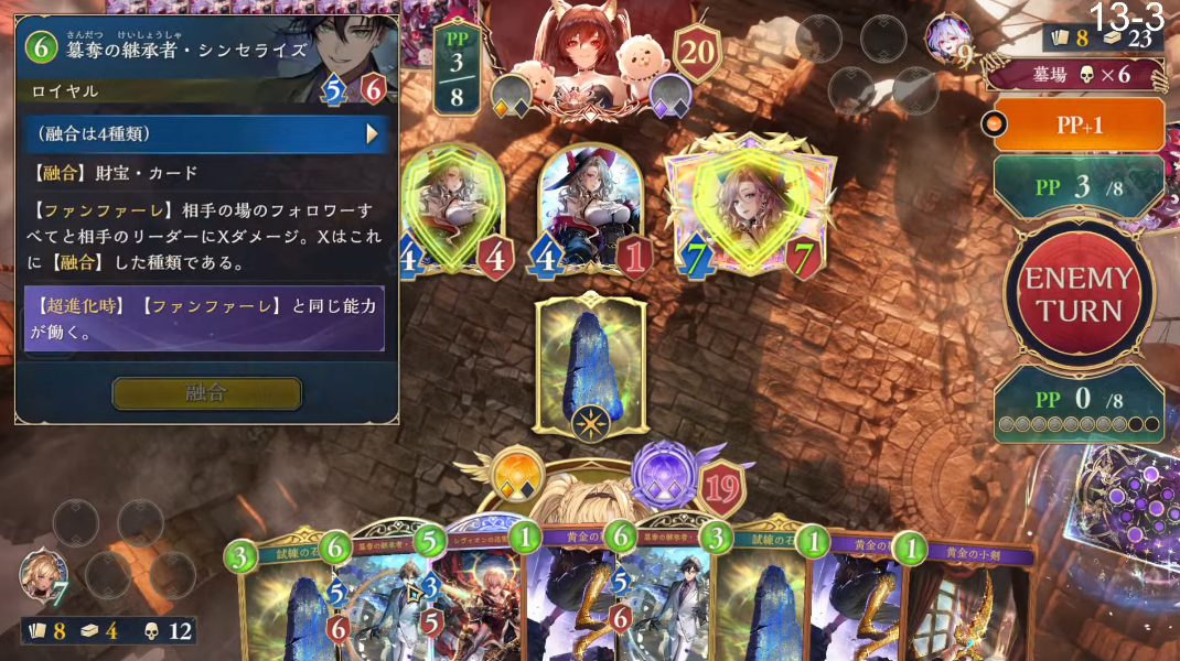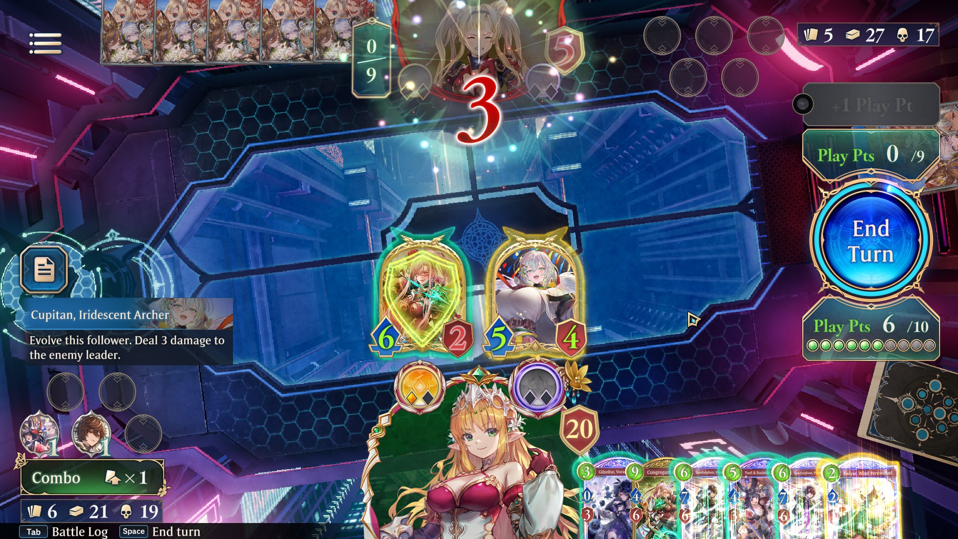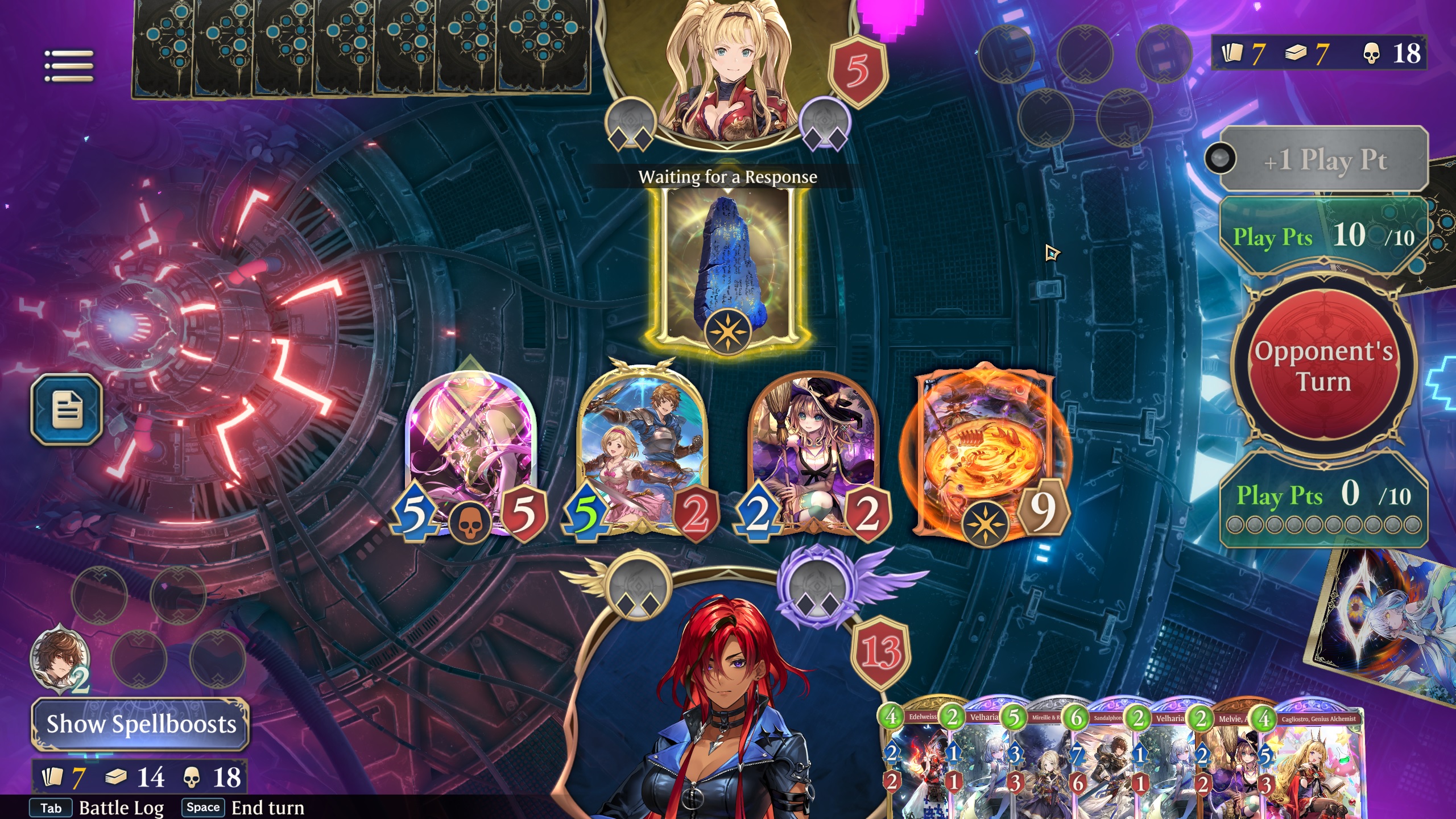 >calculate exact lethal next turn>sandalphon comes out of the deck