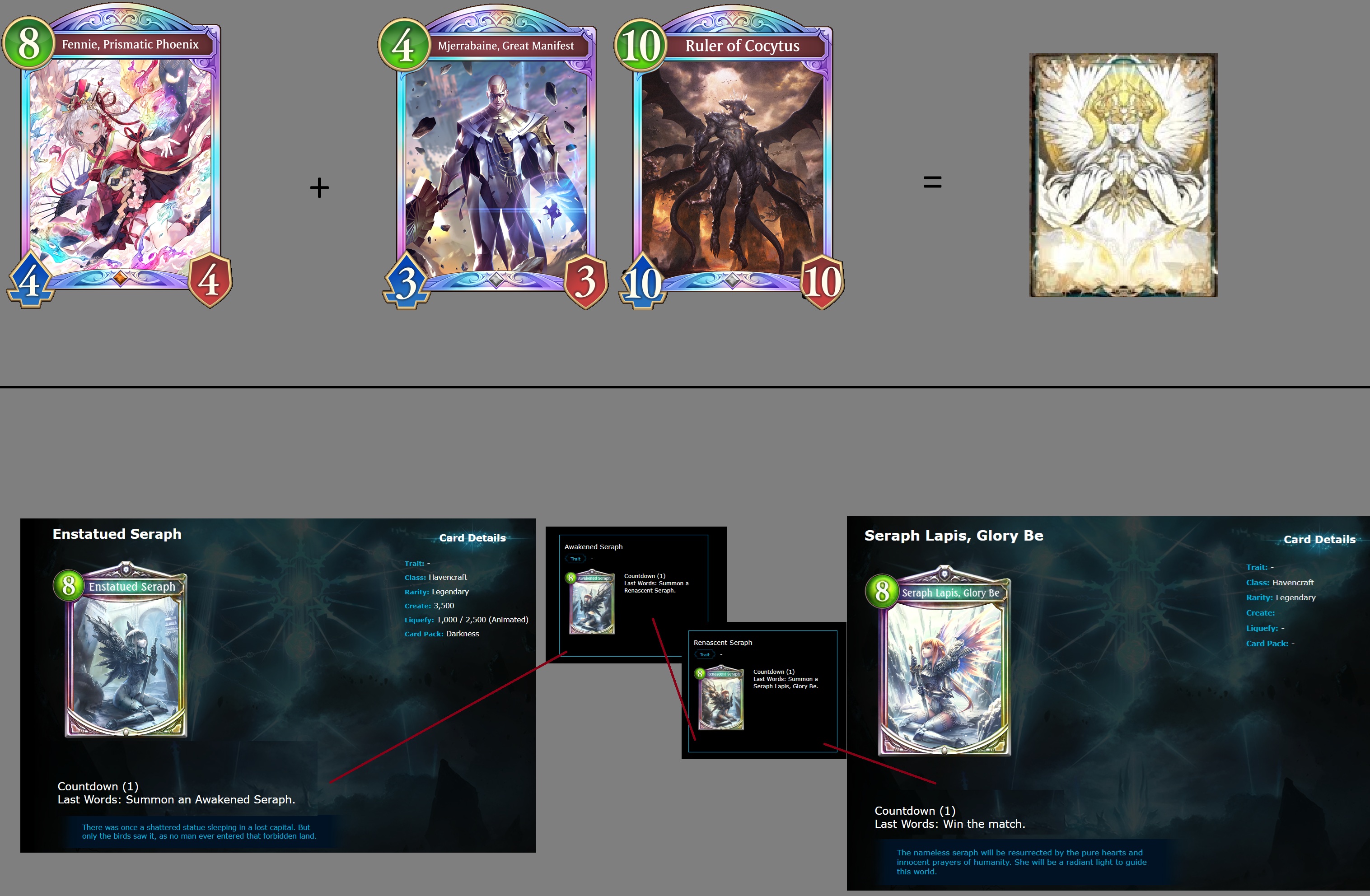 as i got dunked on by ho-chan jerry again, it made me realize this deck is the shadowverse world beyond's version of the hag havencraft enstatued seraph deck from the original shadowverse game