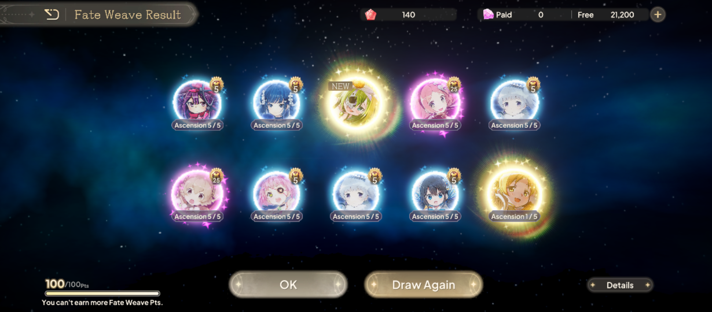Holy fuck finally after 11 pulls.>Tsukasa A1>Oriko A2>Homura A5 (from the 50 points key, also my very first A5)>Mabbers A1>Tsukasa A2 (from the bonus 100 points pull)>Halloween Alina>Mami A1Not a bad session overall. I'm kinda close to a pity so I'm wondering if I should go all in for a 2nd copy and screw the christmas/new year units or keep saving.