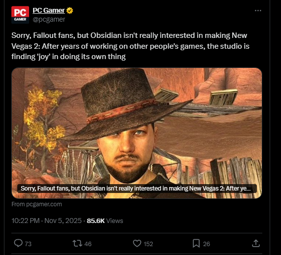 Hot take!!!Outerworlds 2>new vegas