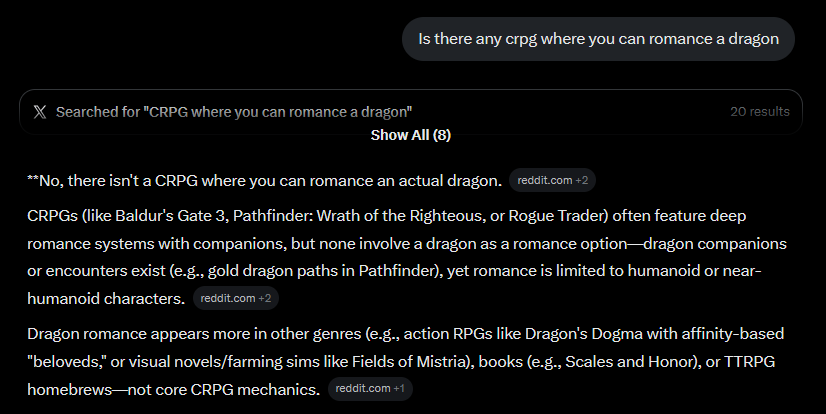 There’s never been a real crpg because none of them allow you to romance a dragon