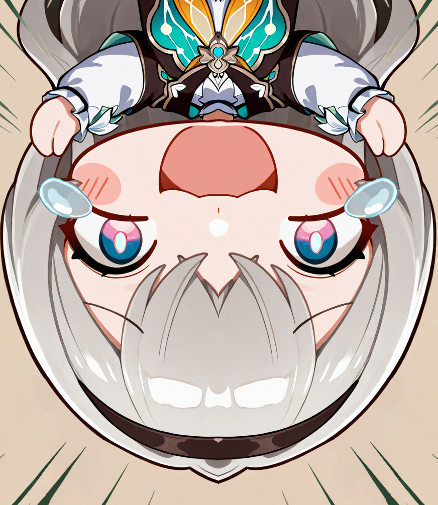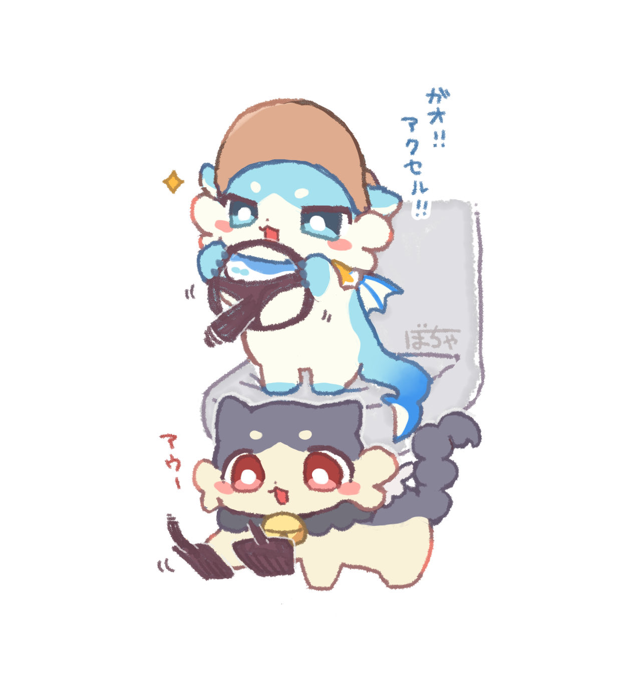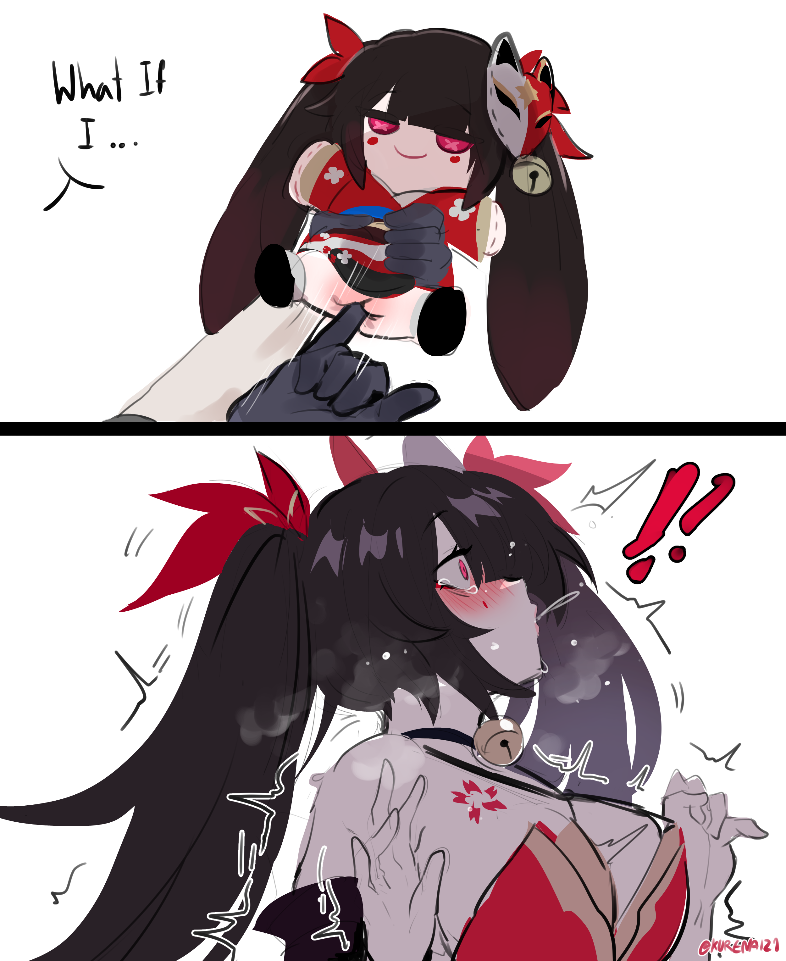 Small, chibi, doll sparkle who's vagina is connected to big sparkle.