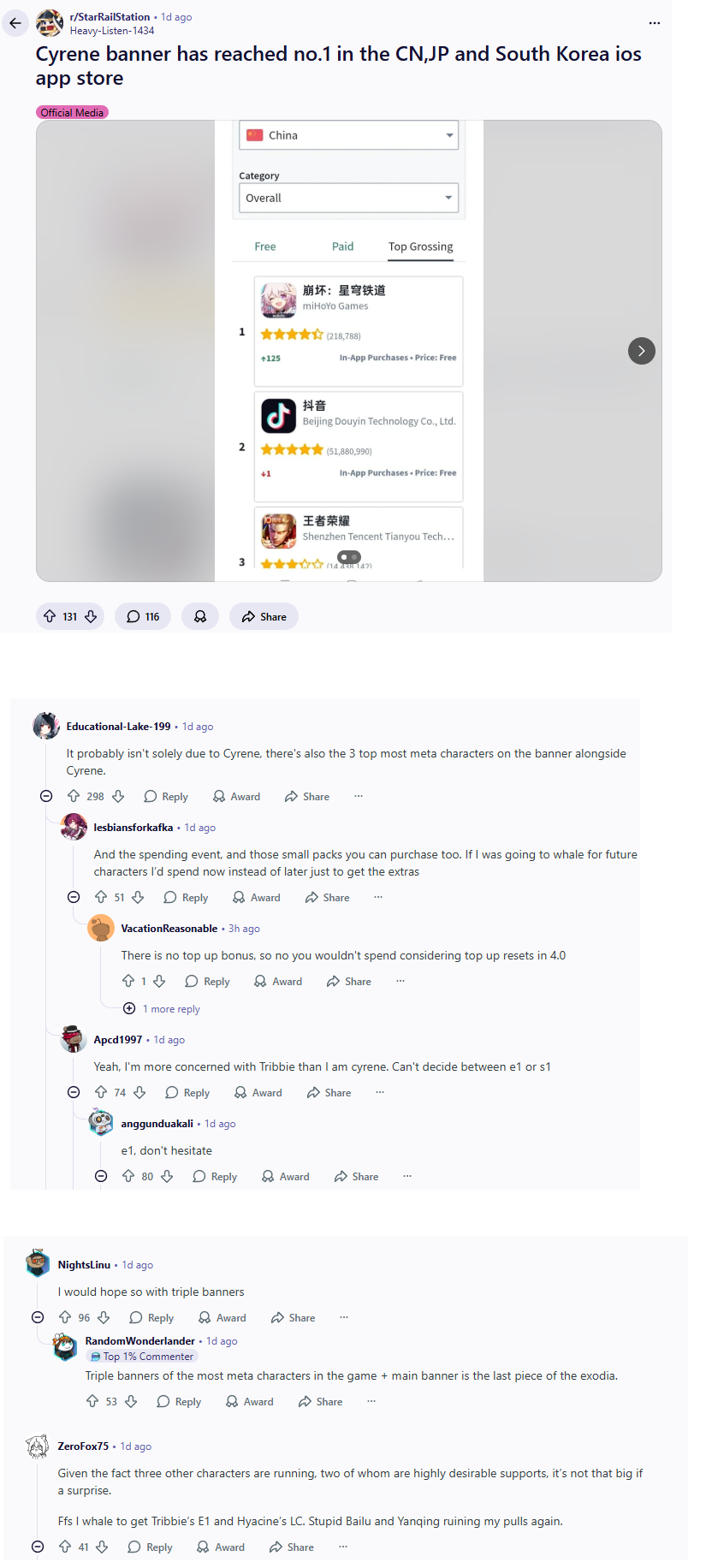 It brings me great pleasure to know that HSR once again topped the charts for the third time in a row this year while (you)r gacha continues to flop and slop down the toilet into irrelevancy so you’ll once again spend 24 hours on /hsrg/ and seethe at the BIG DOGS LOLEEEEE