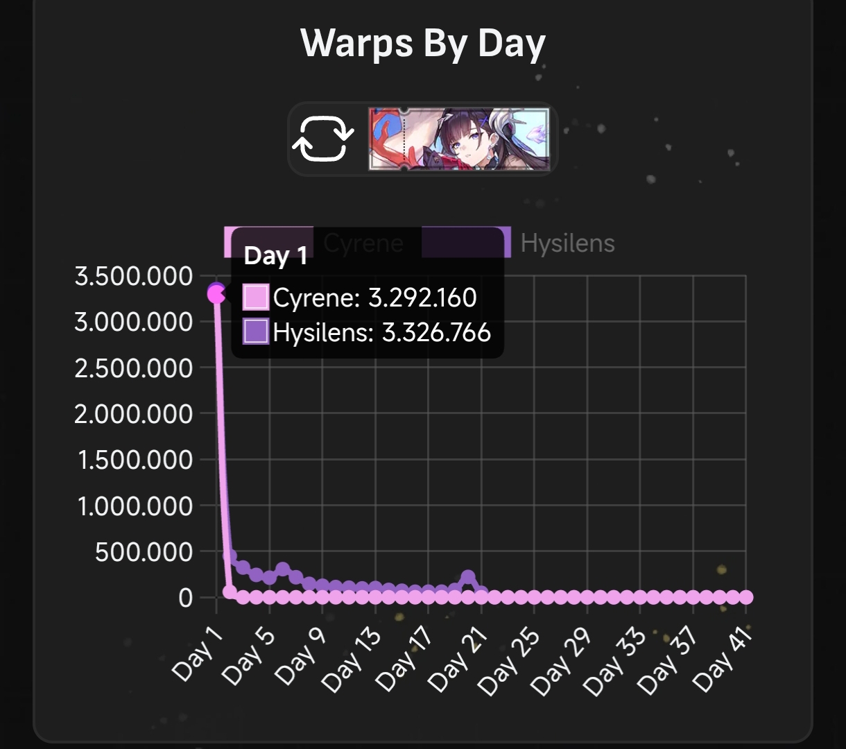Getting 200 speed for Cyrene is such a chore. After burning through all the relic recon, I'm still 20 short.