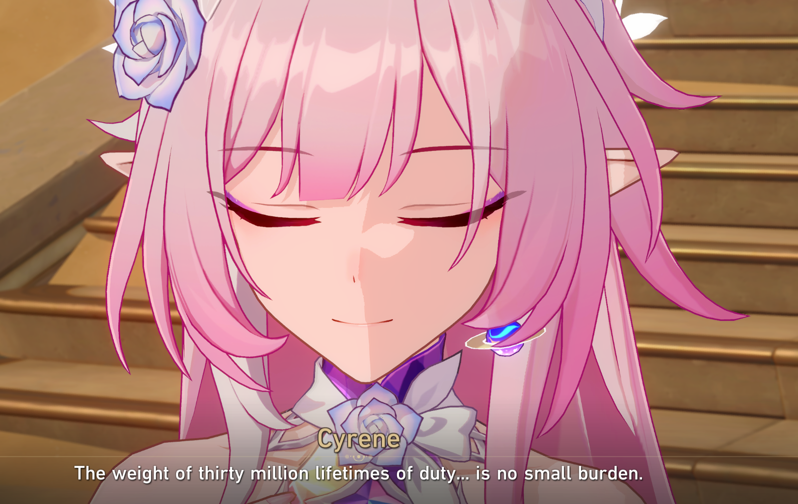 Cyrene essentially became the mini-Fuli of Amphoreus to trigger a time paradox and lock in its causality, preventing enigmata or remembrance from rewriting or erasing the course of its events.