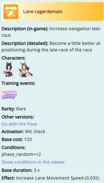 >>545530902It looks as though if you have a lane change buff and are in the process of doing a lane change (up until its last frame), you get that 0.49m/s buff.For the clip, that Seiun's Dodging Danger is later patched to be the one skill (along with it's white version, Sixth Sense) to have a lane change built in on trigger, so she's getting a free (and completely pointless) sideways move... and then wants to move back to the rail naturally, and receives the extra target speed the whole time. Normally you'd need a reason to lane change, though. This won't be a thing for every lane change skill, or any other skill, actually. Hopefully they'll leave it out of Global entirely, it's unnecessarily weird.