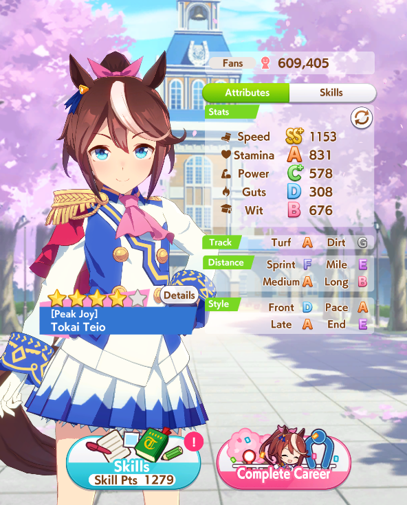 >>545533113>use your kita, borrow Creek, and use 4spd/2stam. use 9* stam/best possible native power inheritance. >advise her to get level 4 speed training by end of junior year if possible