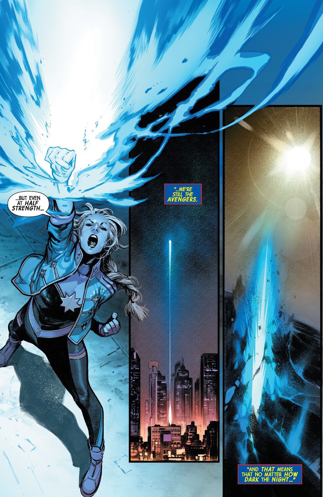 Can Carol just change the color of her powers at will? Cause I swear I've seen her glow gold, red, purple, and blue now. She's hit all the Super Saiyan colors except green and pink. lol
