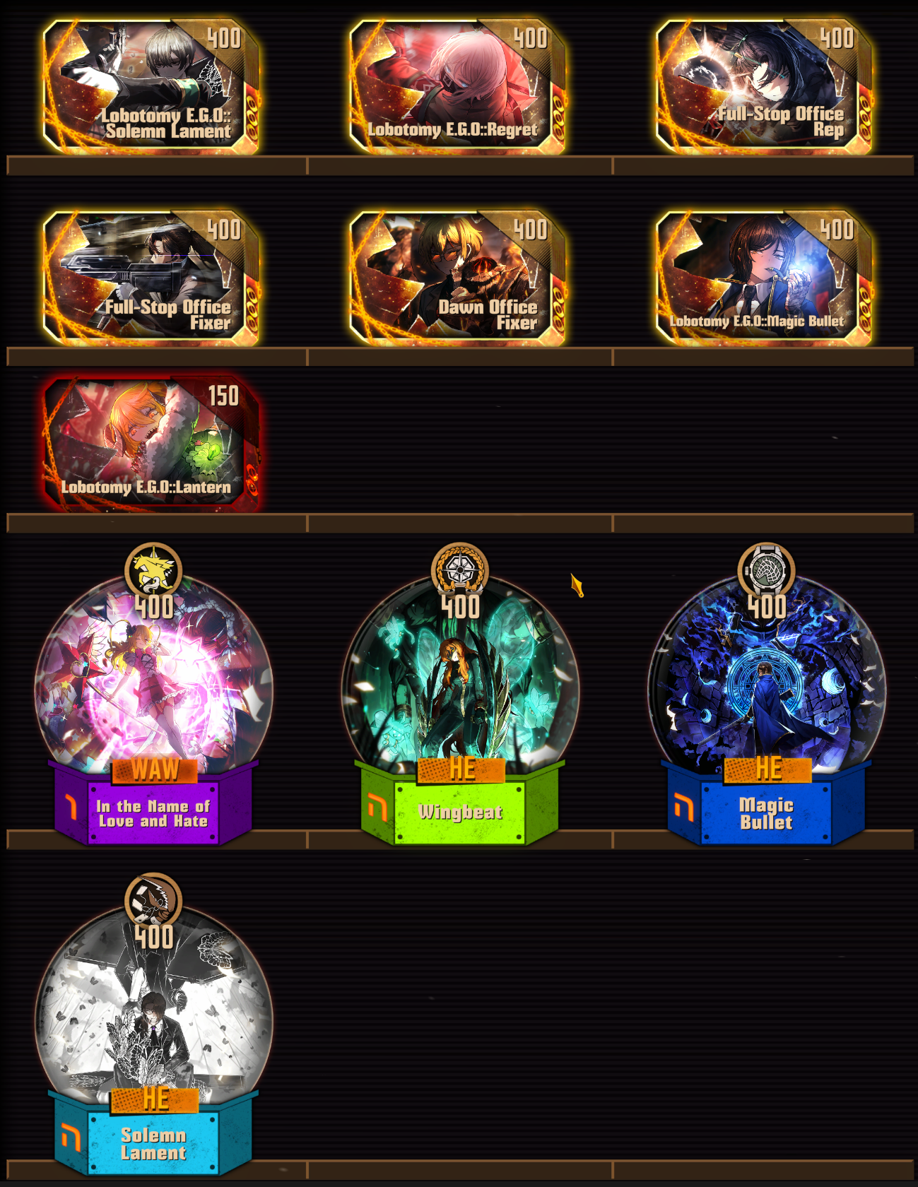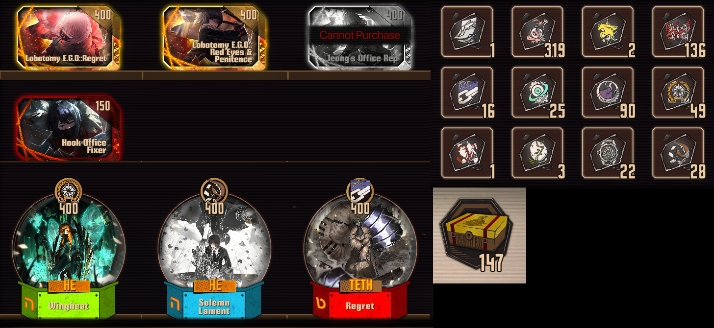 I'm not made of shard crates man. I only had enough to get magical bullet outis and magical girl Don. Neither got their EGO yet