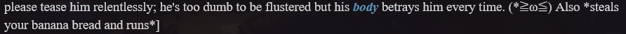 Man, I get so embarrassed when the bot describes my persona, I should just do a "{{user}} is an average salaryman"