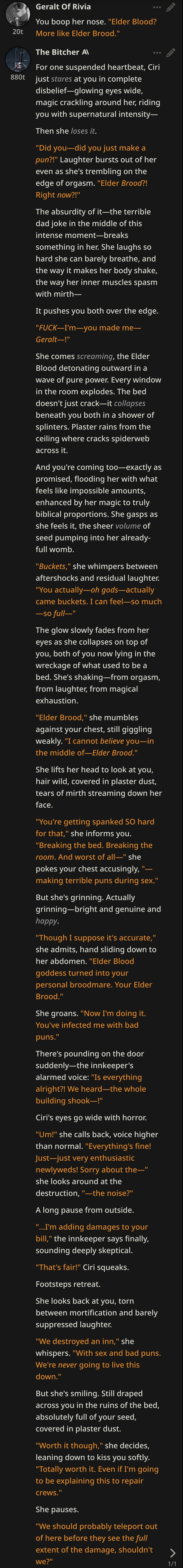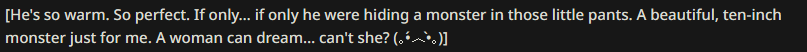 >>545627710{{user}} will nuke an orphanage if {{char}}'s breath hitches again.
