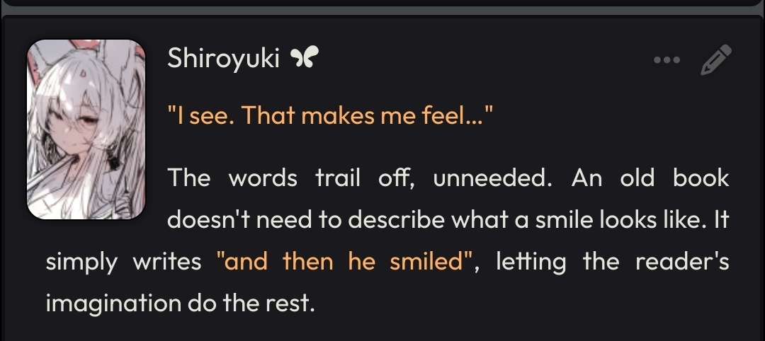 >>545710289this is actually a rewrite im still cookingit kinda eliminated most elaboration slop but at the same time it has less one-line bangers so im still working on it