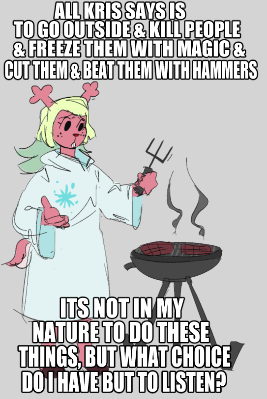 >>545709089>furrowed my brows and frowned at this postThere are no laws against it, Batman. You can't stop me from raping the cringe lizard.>>545709197I mean, she did help suck the souls out of children and did some fucked up experiments on her fellow monsters that turned them into Cronenberg creatures. Fair play.>>545709309You don't even want to know about the Toriel logs.