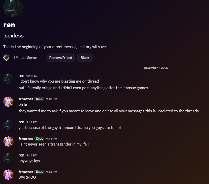 >>545708581>let me just shit talk you in game and on discord and tbag you ha ha im just joking >.<Hmmm kys