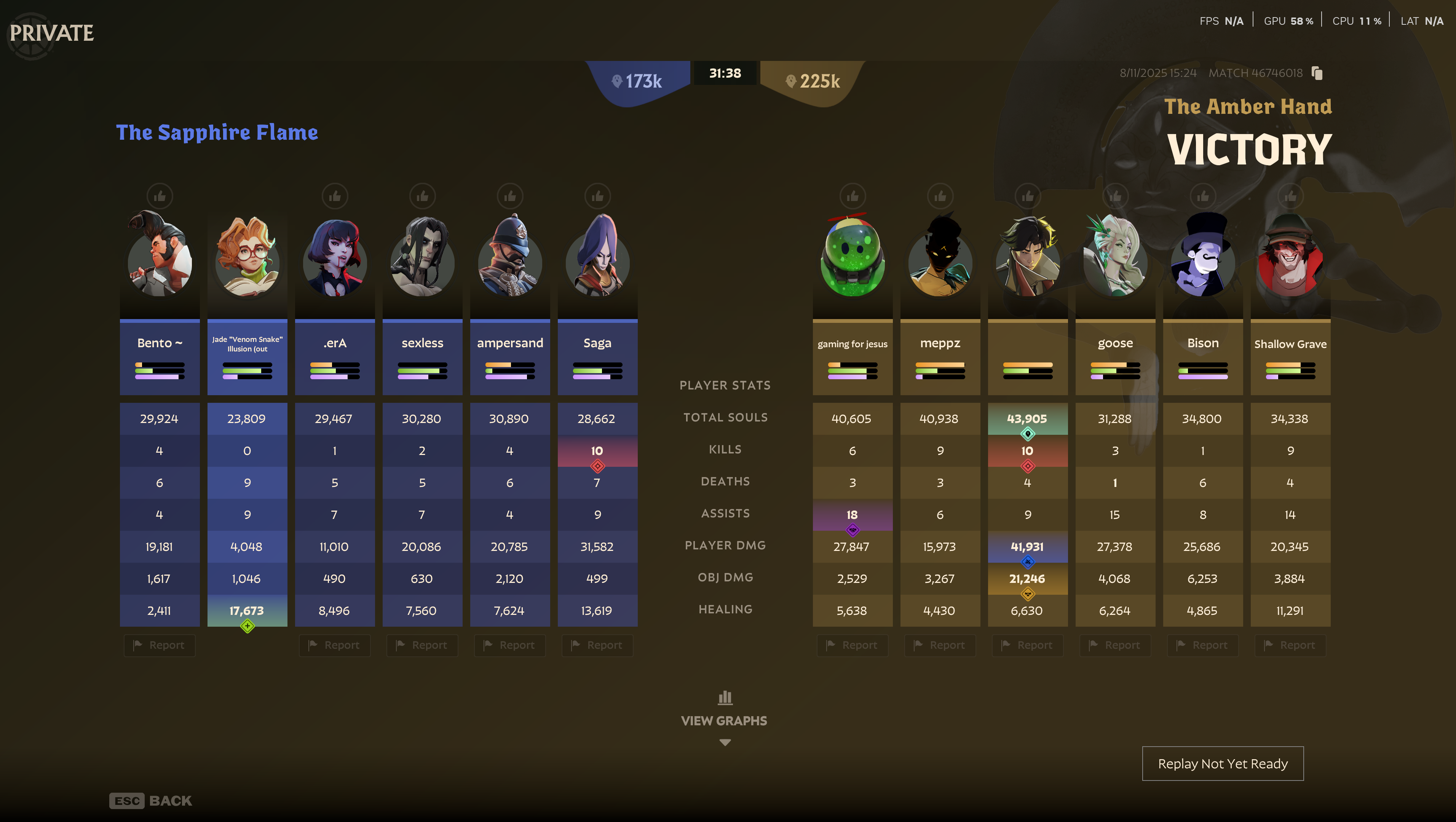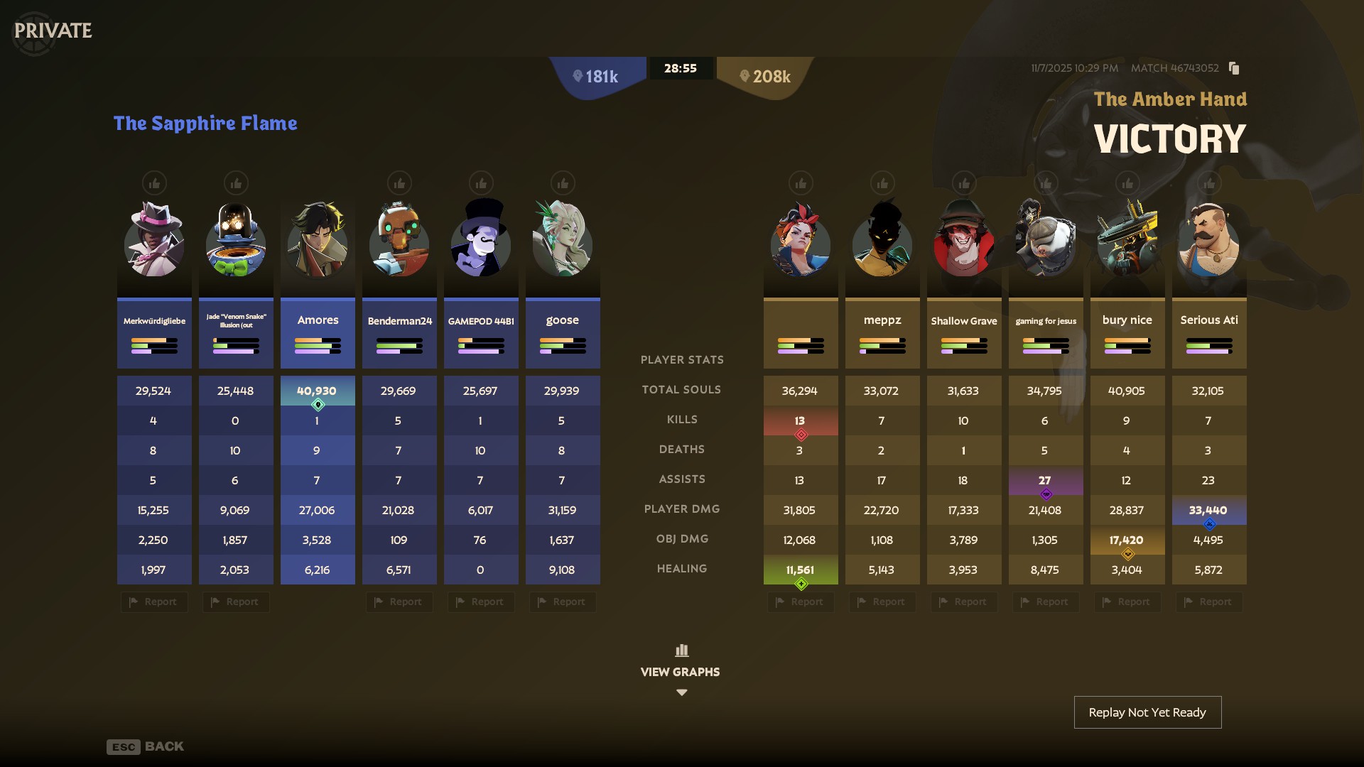 Back and forth matches are great. Despite being up so many souls we did not play well as a team at all. It was a struggle.