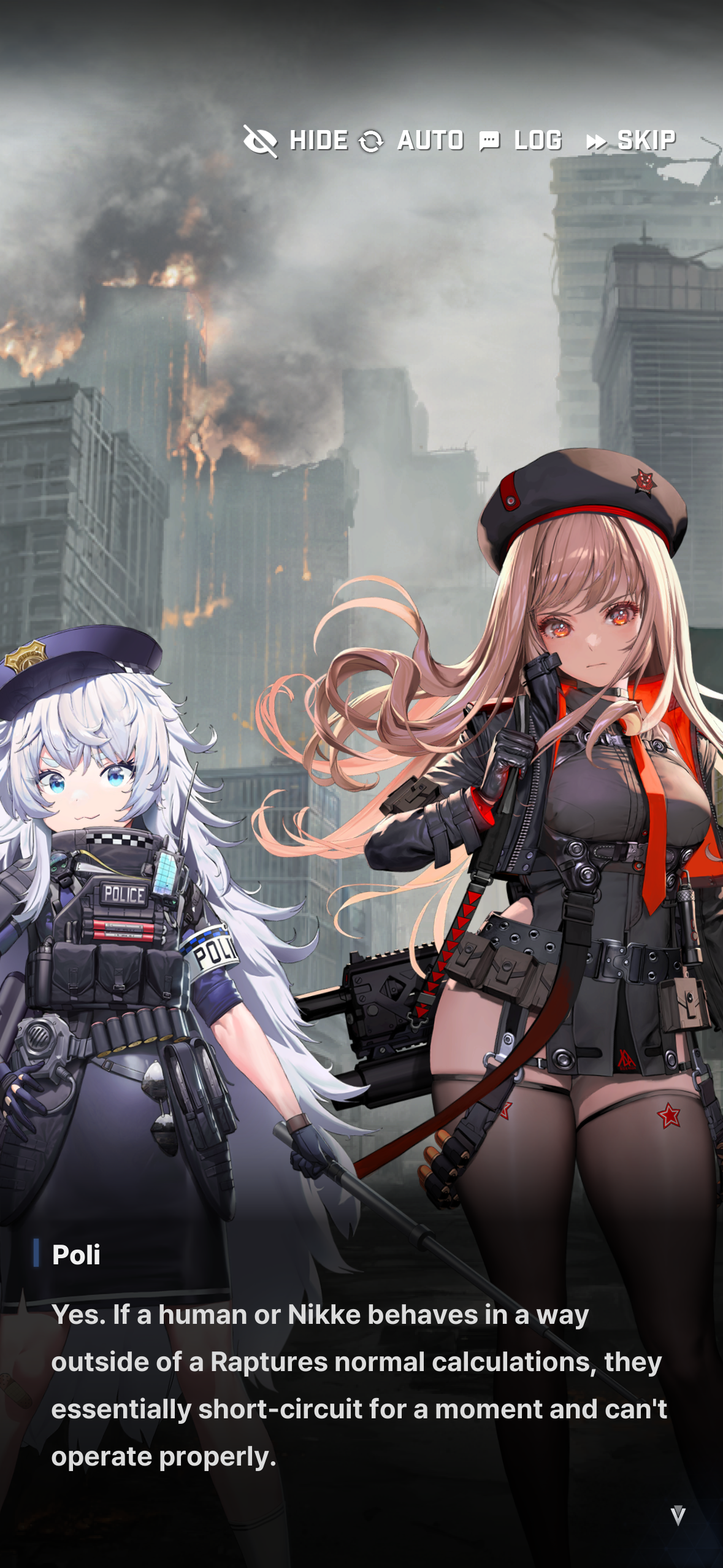 By the way I’ve been wondering since I rushed the story. Early on they talk about how the Commander was able to win impossible battles and Andersen talking about how the Raptured didn’t crowd him. One battle he went in in spite of others telling the low chance of finding survivors, another he went before Shifty talked about low probabilities. We are put to test in the simulator with horrible results and Andersen questioning what happened.Later Chatterbox kidnaps us and gives us a series of questions, I thought this had something to do with it. Nihilister later said Chatterbox told her something inside his body was important (the Vapaus clue) and I assumed his weird blood type could have contributed to it.Recently however Poli dropped this. Does that mean the reason Commander could win or the Raptured “avoided” him was actually because the low probability fights he was taking were either ignored by Raptured or causing them to short-circuit on the spot because they couldn’t comprehend what he was doing there?