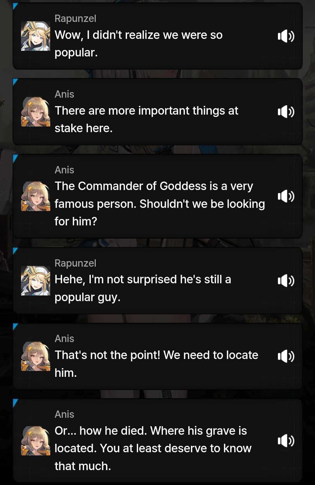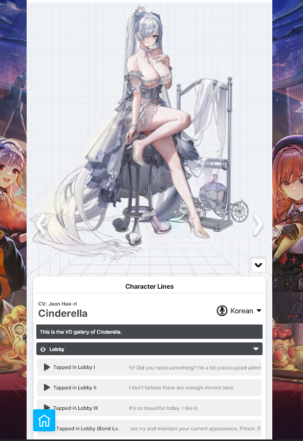 >>545636669This humble one thanks thee.I knew you can check in-game but almost everything is locked, regardless of bond level. I knew of the wiki but they don't have Japanese voices or lines. I was hoping someone knew of another place that datamines it.