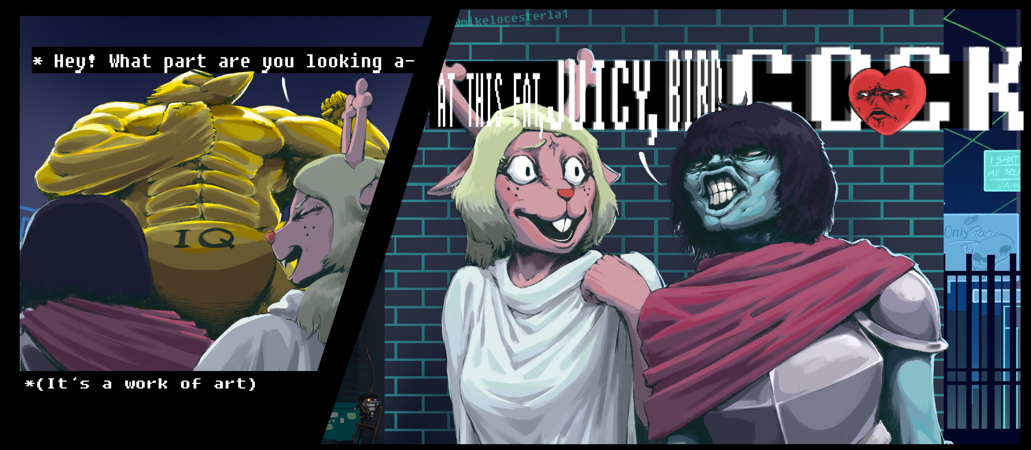 flattened out in the deltarune edition autism roller (spamtong and tennor mashing me between their beanbag guts)