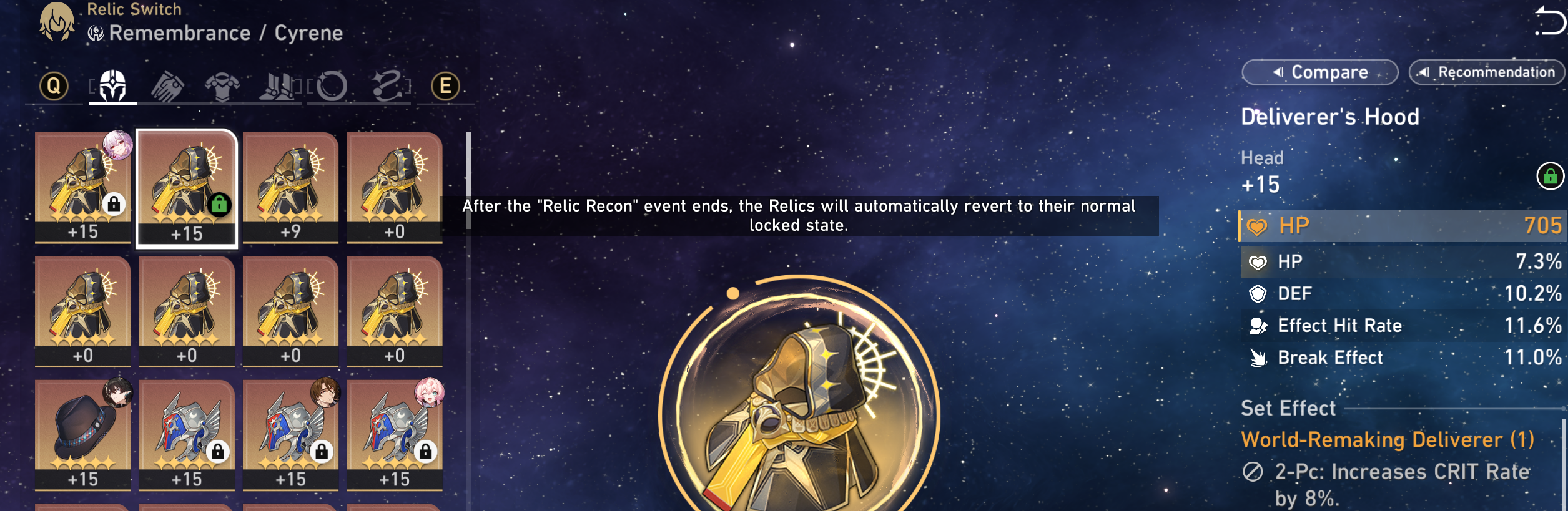 Before I brick the relic recon event can I grab something like an eagle chest/helm then some cavalry gloves + shoes for different characters? Or does the character/relic set get locked in or you can only pick one type of relic/planar set?Is it possible to get something like a lukshaka rope that's perfect for terravox and a lukshaka orb that's perfect for a hp scaling character?