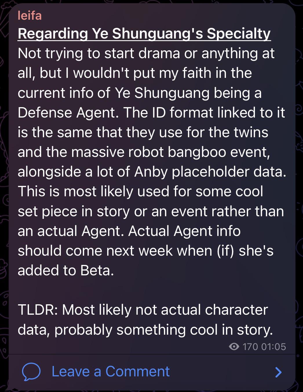 >>545727985He's literally saying he doesn't know anything. The devs don't add story shit in the beta because it's only used for testing out characters. They wouldn't have given it the defense role if it was only meant for story or an event, they would just leave it blank like they did for Belle, Wise, and Chinatsu