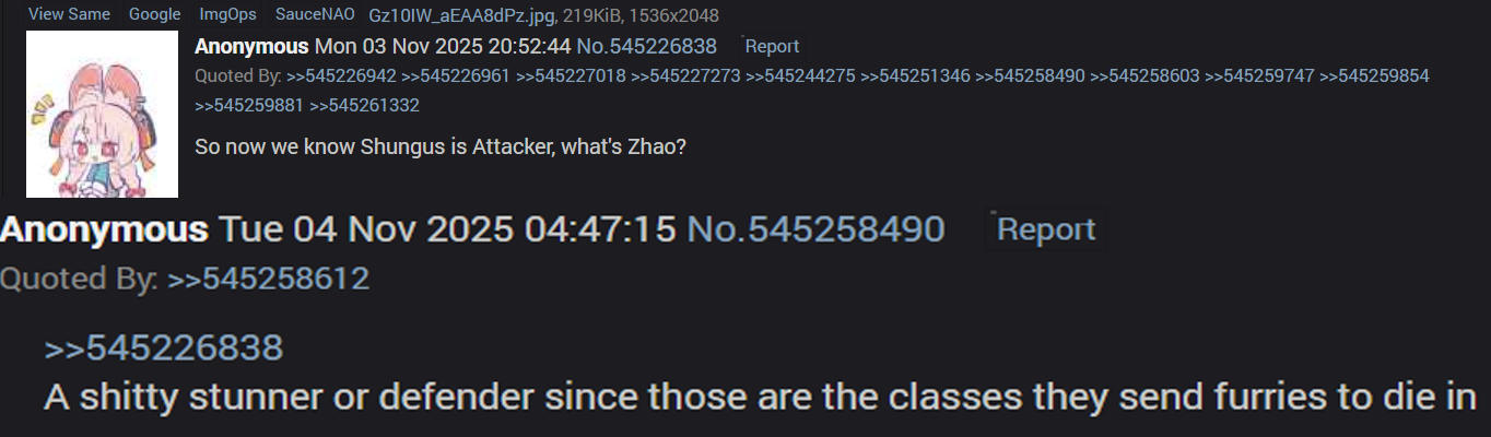 >>545727756zhenzhen is Shunguang. We know this because that's what her old ID was named. That's why I said it makes no sense, because she wouldn't have been added to the 2.5 beta as a defender if she wasn't actually one