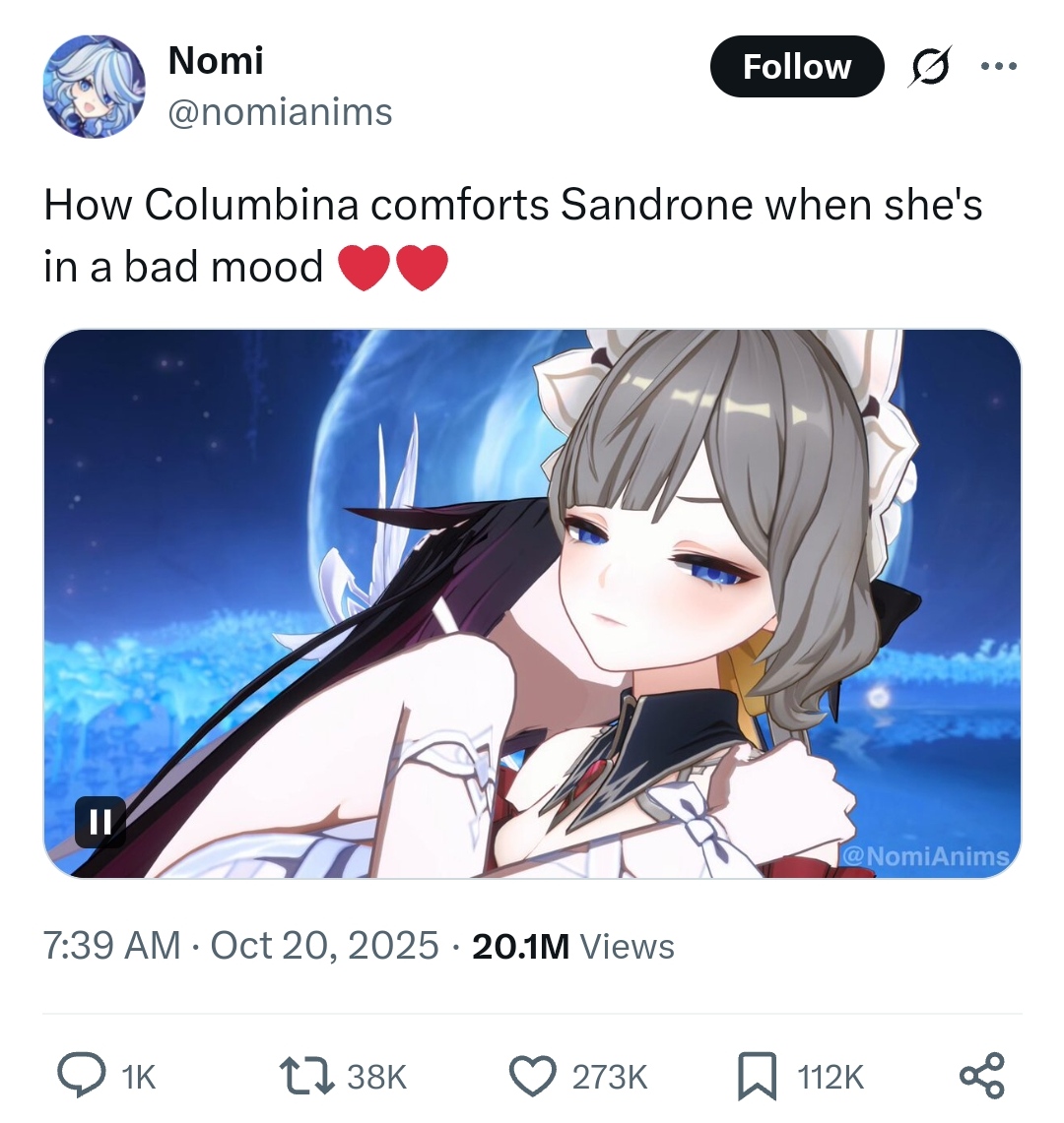 Previous: >>545726118 >Character Trailer - "Nefer: Shadowbearing Serpent"https://youtu.be/jcFd1qbRg_I [Embed] (EN)https://youtu.be/hDktaZmrzn4 [Embed] (JP)>Character Teaser - "Nefer: An Inevitable Inconsistency"https://youtu.be/egKU8L59cCQ [Embed] (EN)https://youtu.be/ohV402u_eGE [Embed] (JP)>Character Anecdote - "The Gem Scam"https://youtu.be/46q9MNa50Yo [Embed]>Miliastra Wonderland: Version "Luna II" Legendary Set Trailerhttps://youtu.be/nZA0vvO6EbU [Embed]>Version "Luna II" "An Elegy For Faded Moonlight" Trailerhttps://youtu.be/w50jW_iEXns [Embed] (EN)https://youtu.be/x-8hTneUDlY [Embed] (JP)>5th Anniversary Theme Song: "The Long Way Home"https://youtu.be/OvHwco4OxDo [Embed]>Current character banner: Nefer, Furina, Collei, Xingqiu, Yaoyao>Current weapon banner: Reliquary of Truth (Catalyst), Splendor of Tranquil Waters (Sword)https://www.hoyolab.com/article/41848209>Daily check-in rewards (permanent)https://webstatic-sea.mihoyo.com/ys/event/signin-sea/index.html?act_id=e202102251931481&lang=en-us>Redeemable Codes with Primogems (all regions): https://genshin.mihoyo.com/en/giftGENSHINGIFT0FQBAJNXCUFUEPIC2025MBEYNDLU3WGZ (NEW; *gives Geodes, not Primogems)R4SCAU7CR1G9>Useful Links (Wiki, Simulators, Maps, Character Builds, /gig/ friendlist, Third-Party Tools, etc.)https://rentry.org/giglinks/gig/ OP pastebin (use this if making new thread):https://pastebin.com/ca0zseQ9