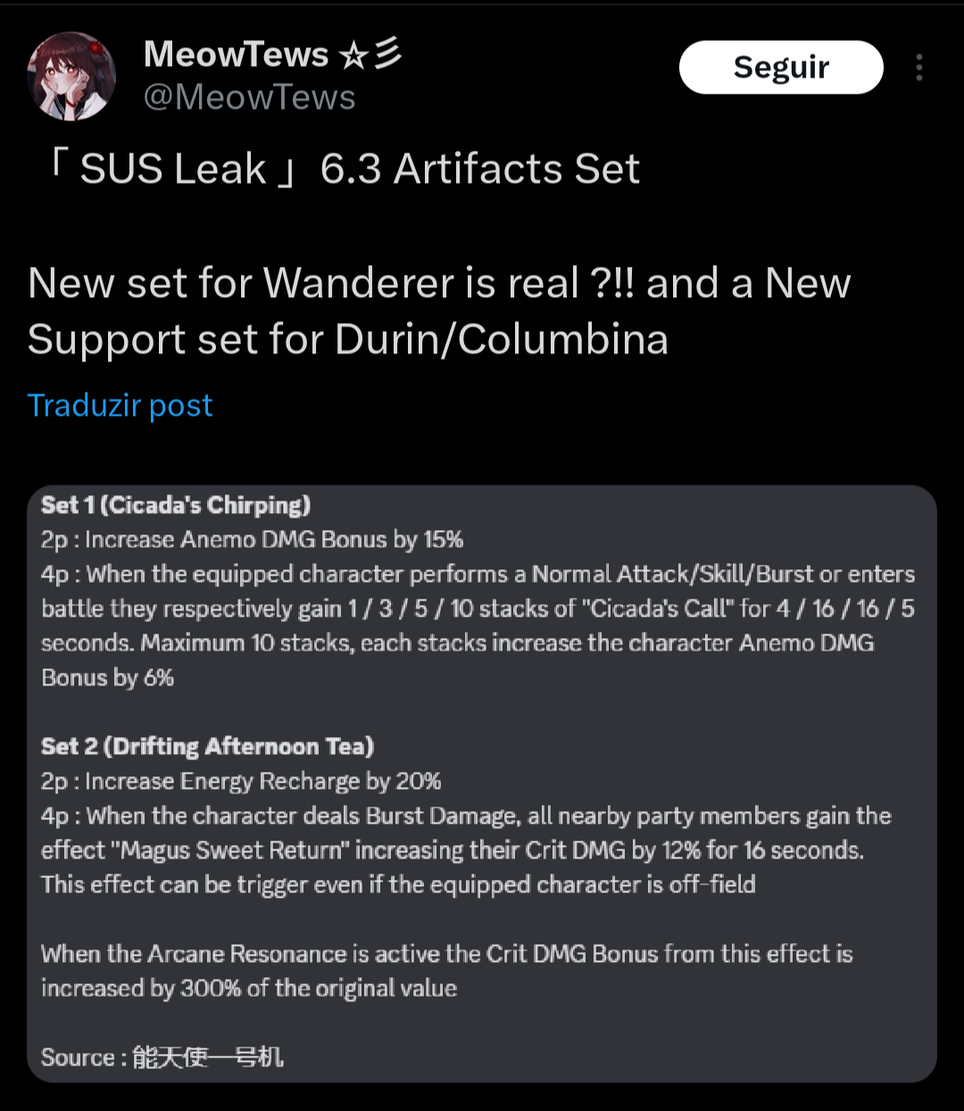 Idk if the artifact leak is read but there was a leak that Wanderer and Durin will get new sets in 6.3 Maybe it's a fanfictiom based on that leak, maybe realhttps://arch.b4k.dev/vg/thread/544568373/#q544576624