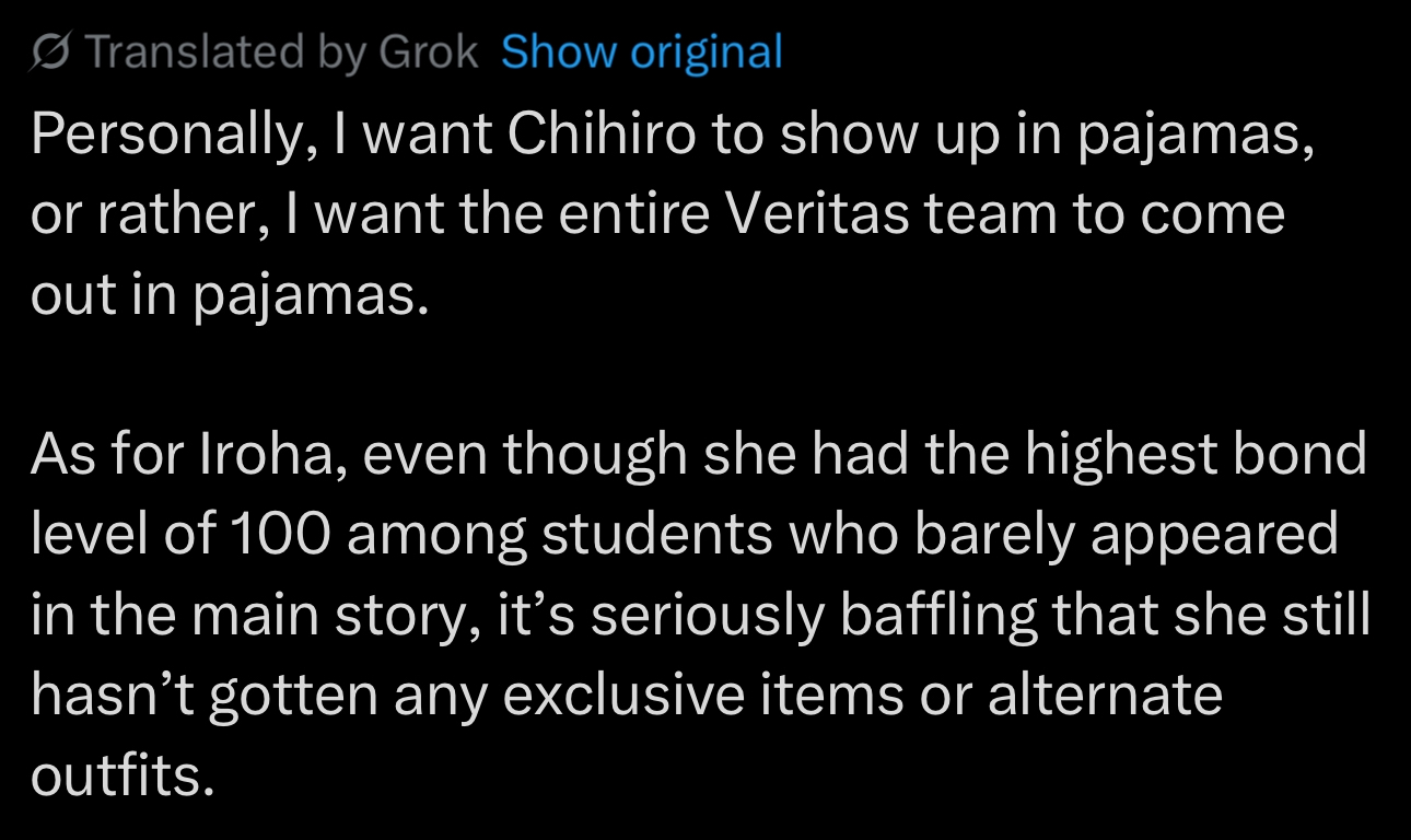 >>545809801man, this is a gacha game, you're literally not supposed think about the logic of shit like thisare you also bothered that the idols in idolmaster never age, or how do you how so much to produce all of them multiple times