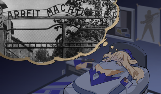 >Syuen wakes up in cold Sweat in her room, realises is 3am, then goes back to bed before Mustang barges in screaming about entertainment-