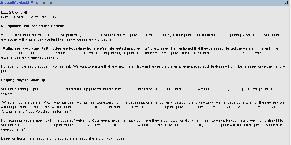 >devs are so lost with what to do with ZZZ that they're trying to turn it into a multiplayer action gameI legit don't know whether to laugh or what. It's just kinda ridiculous