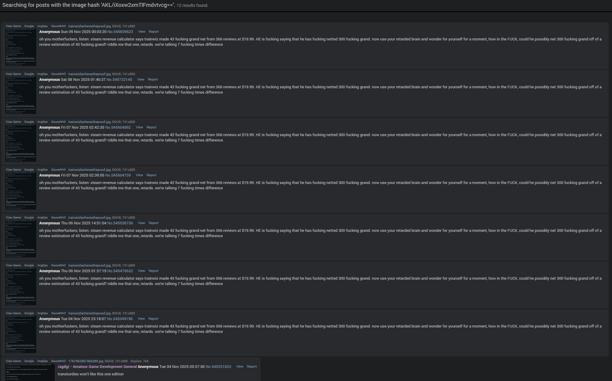 oh you motherfuckers, listen: steam revenue calculator says trainwiz made 43 fucking grand net from 366 reviews at $19.99. HE is fucking saying that he has fucking netted 300 fucking grand. now use your retarded brain and wonder for yourself for a moment, how in the FUCK, could he possibly net 300 fucking grand off of a review estimation of 43 fucking grand? riddle me that one, retards. we're talking 7 fucking times difference