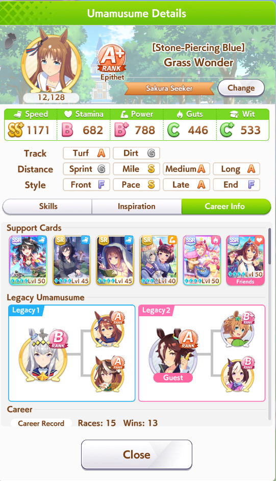 >decide to make a new parent Ryan with Umastan for once Dober comes out>Fucking Kikuka Sho>Every time I get there I don't have enough stamina>Can't use my normal parents for her because Aoharu gives hints based off of whatever you have A in and my parents all have 2* of pace in there somewhere to bump what I want them for to ALast time I tried to make a horse in Aoharu that had A in an extra I ended up with a Tachyon with nothing but late surger hints and was worthless.